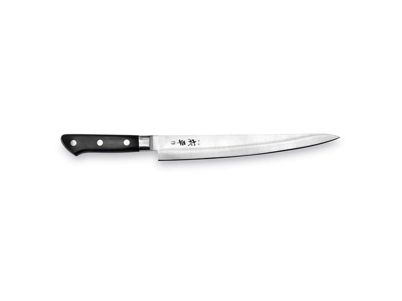 Narihira Basis Trancherkniv med 24 cm bladlængde er en økonomisk japansk kniv, der giver dig god skæreevne til en fordelagtig pris. Kniven er fremstillet i hårdstål med en hårdhedsgrad på 59 HRC og har et praktisk sort ECO-skæfte, der ligger godt i hånden.