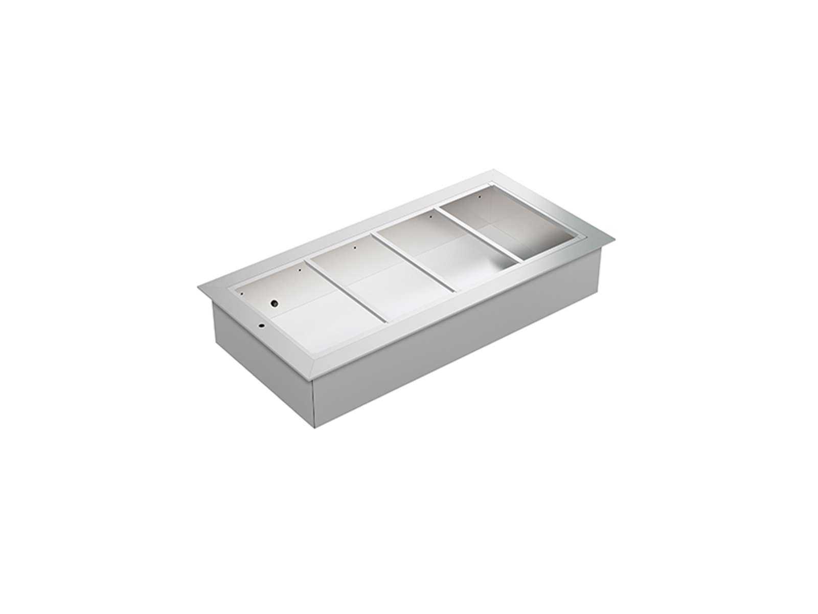Enofrigo drop-in vandbadet med ramme til 4x1/1GN er designet til professionel varmholdning af mad i buffet- og kantineløsninger. Med en præcis elektronisk termostat sikres stabil temperatur mellem +30°C og +80°C, mens den gennemtænkte ramme muliggør nem integration i eksisterende serveringslinjer.