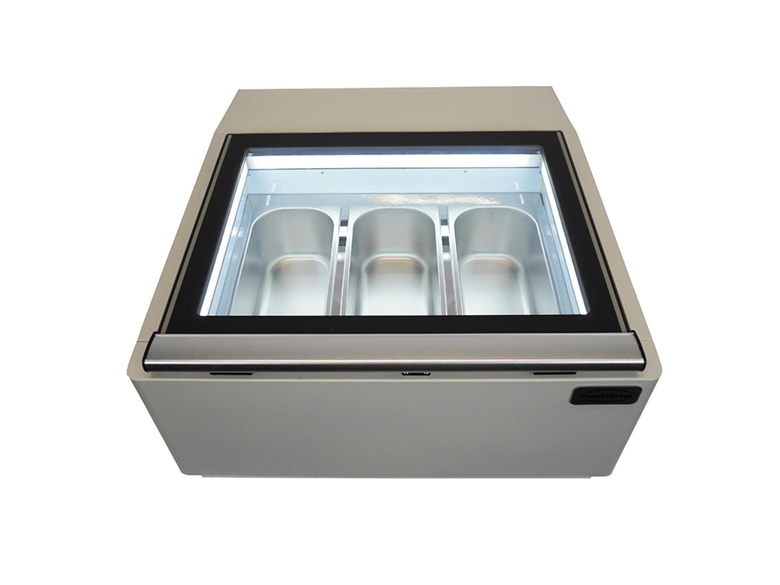 Med plads til tre beholdere på hver 5 liter giver denne isdisk dig mulighed for at præsentere forskellige varianter samtidigt. Dette giver dine kunder valgmuligheder og dig fleksibilitet i dit udbud. Bordmodellen er designet til at passe ind i eksisterende arbejdsgange og kan placeres på en disk eller et bord, så personalet let kan betjene den. Den kompakte størrelse gør den ideel selv til mindre serveringssteder med begrænset plads.