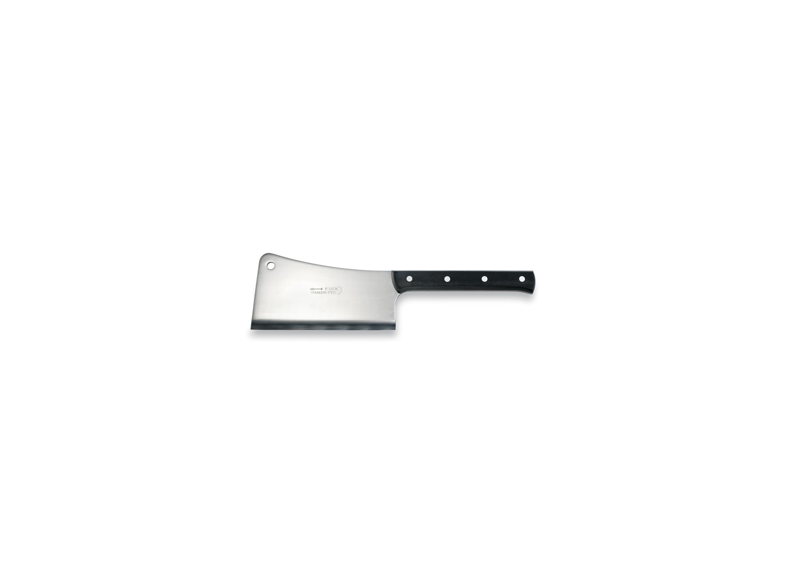 F. Dick kødøksen med 25 cm blad og tohåndsgreb er fremstillet af højlegeret rustfrit stål, der sikrer lang holdbarhed og vedvarende skarphed. Det ergonomiske tohåndsgreb giver fuld kontrol selv ved kraftfulde hug. Ideel til professionelle slagtere, restaurantkøkkener og jægere, der forarbejder vildt.