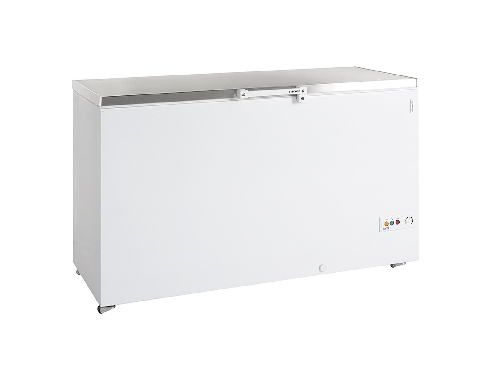 Tefcold FR505S SL er en rummelig kummefryser med 454 liters kapacitet, der kombinerer holdbarhed med professionel funktionalitet. Konstrueret med hvidlakeret stålkabinet, rustfrit stållåg og monteret på et solidt rustfrit stålstel leverer denne fryser pålidelig køleevne i temperaturområdet -24°C til -14°C.