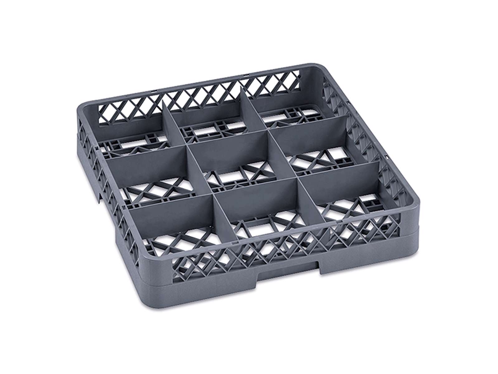 Opvaskebakken måler 500x500x100 mm og er fremstillet af holdbar polypropylen. De 9 rum har hver dimensionerne 15,5x15,5 cm med en dybde på 8,7 cm. Den grå farve gør det nemt at identificere eventuelle rester eller snavs efter opvask, så du kan sikre optimal renlighed.