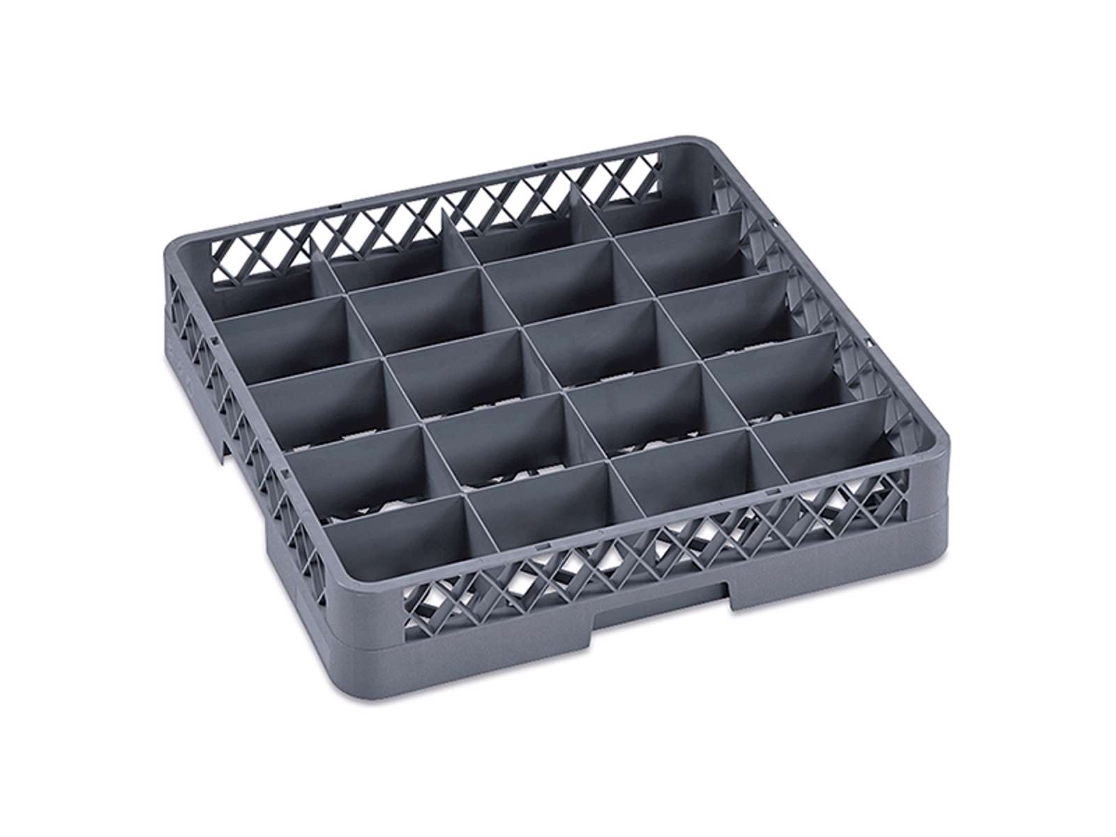 Denne grå opvaskebakke fra WAS er specialdesignet til at beskytte og organisere dine glas og kopper under maskinopvask. Med standardmålene 50x50 cm og en højde på 10 cm passer den perfekt til de fleste industriopvaskemaskiner. Bakken er fremstillet af slidstærk polypropylen og har 20 separate rum, der hver måler 11,5x11,5 cm med en dybde på 9,2 cm.