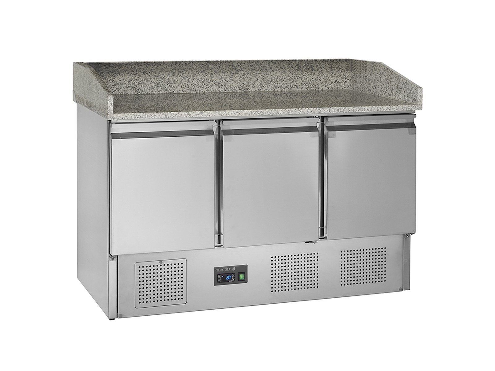 Dette professionelle pizzabord fra Tefcold kombinerer en kølig granitbordplade med 368 liters kølet opbevaringsplads. Konstrueret i holdbart rustfrit stål (SS304) både indvendigt og udvendigt sikrer PT1365-modellen lang levetid under krævende forhold i professionelle køkkener.