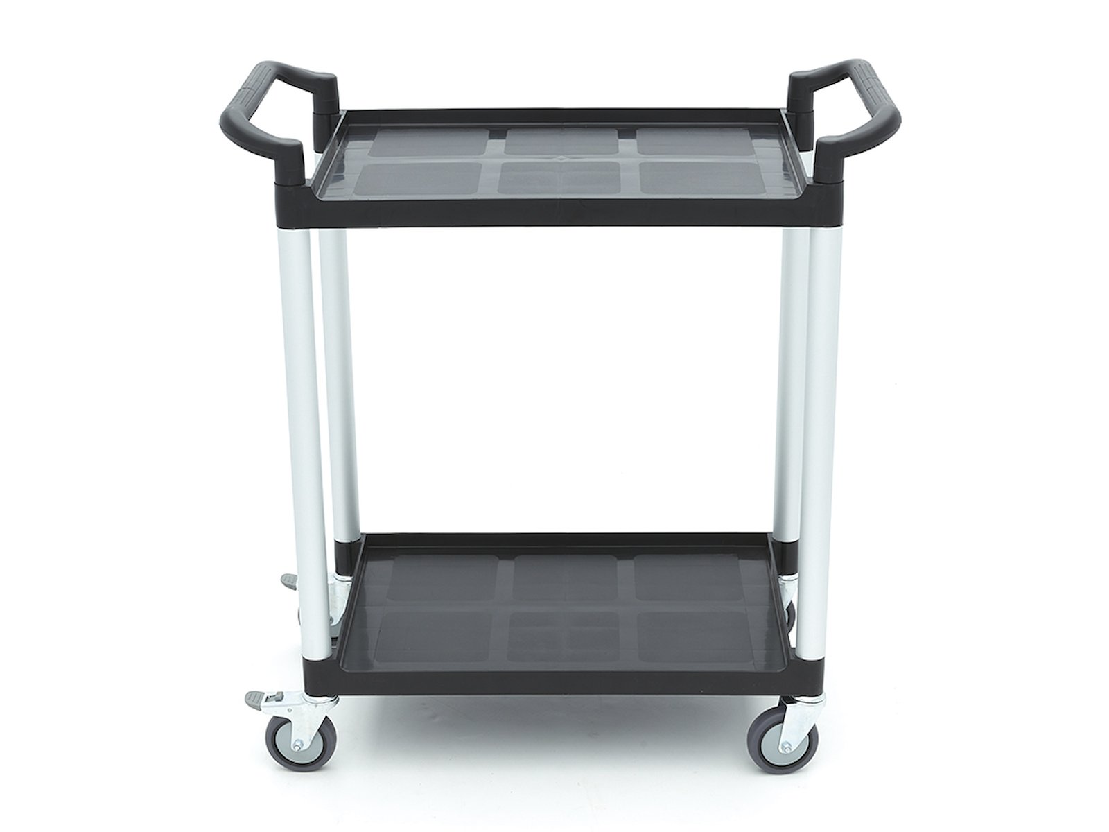 Dette rullebord er udviklet til at lette arbejdet i både professionelle køkkener, kantiner og cateringmiljøer. Med to solide plasthylder får du et funktionelt og stabilt bord, der gør transport, servering og oprydning langt mere effektivt. De hævede kanter sikrer, at tallerkener og udstyr bliver sikkert på plads, selv når du bevæger dig hurtigt gennem køkkenet.