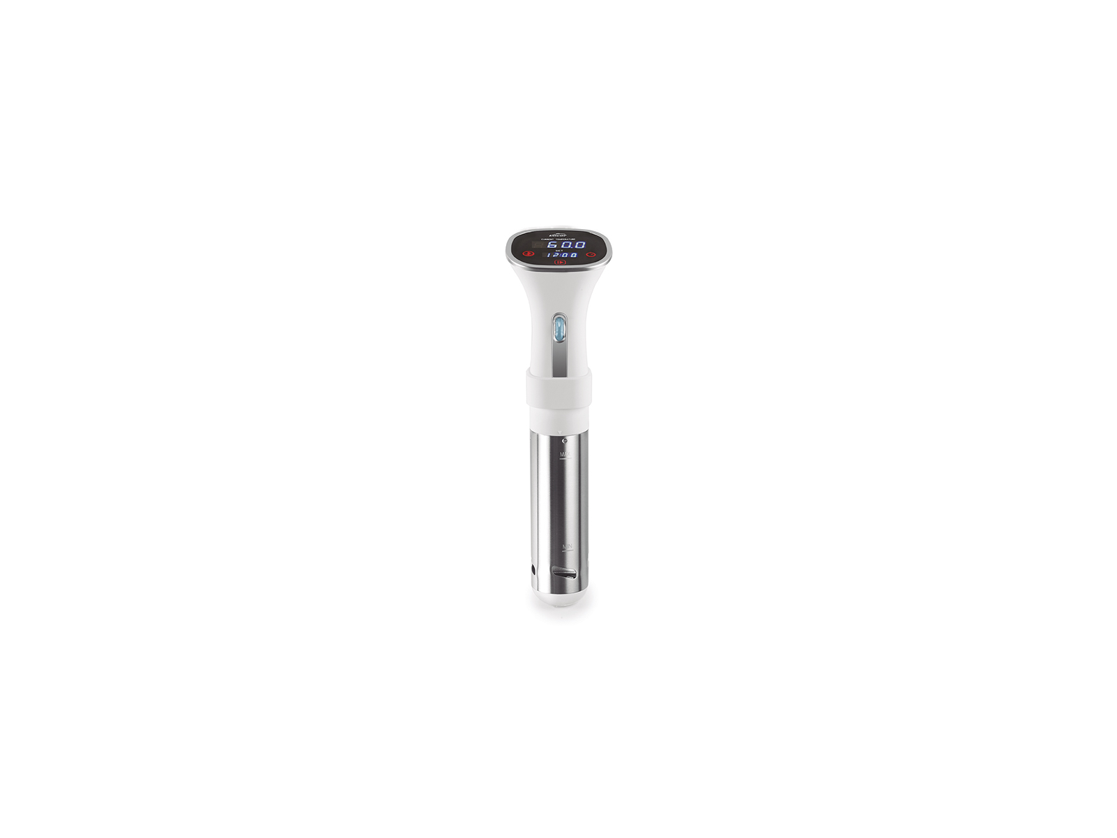 Cirkulatoren måler 370 mm i højden og 100 mm i diameter, hvilket gør den kompatibel med de fleste gryder og beholdere. Den cirkulerer 8,5 liter vand i minuttet, hvilket sikrer jævn temperaturfordeling uden kolde zoner. Temperaturen kan indstilles mellem 20 og 90°C med 1°C præcision, og den integrerede timer kan indstilles op til 99 timer for langtidstilberedninger. Enheden er fremstillet af rustfrit stål af høj kvalitet for maksimal holdbarhed.