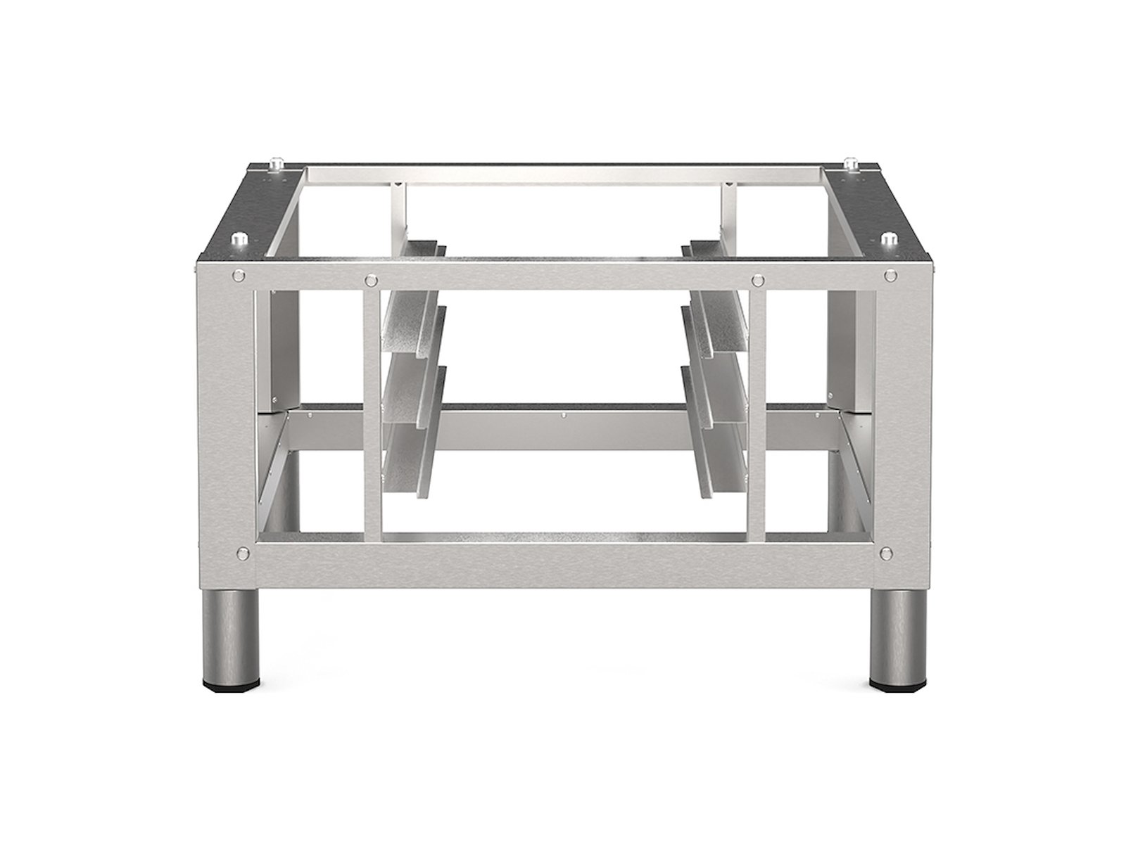 Understellet har 3 indstik med 80 mm afstand, som giver plads til GN 1/1 bakker (600 × 400 mm). Det gør det nemt at have bakker i nærheden af ovnen, klar til brug i produktionen, uden at fylde bordpladsen. Den robuste opbygning sikrer, at både ovn og bakker står stabilt og sikkert i daglig brug.