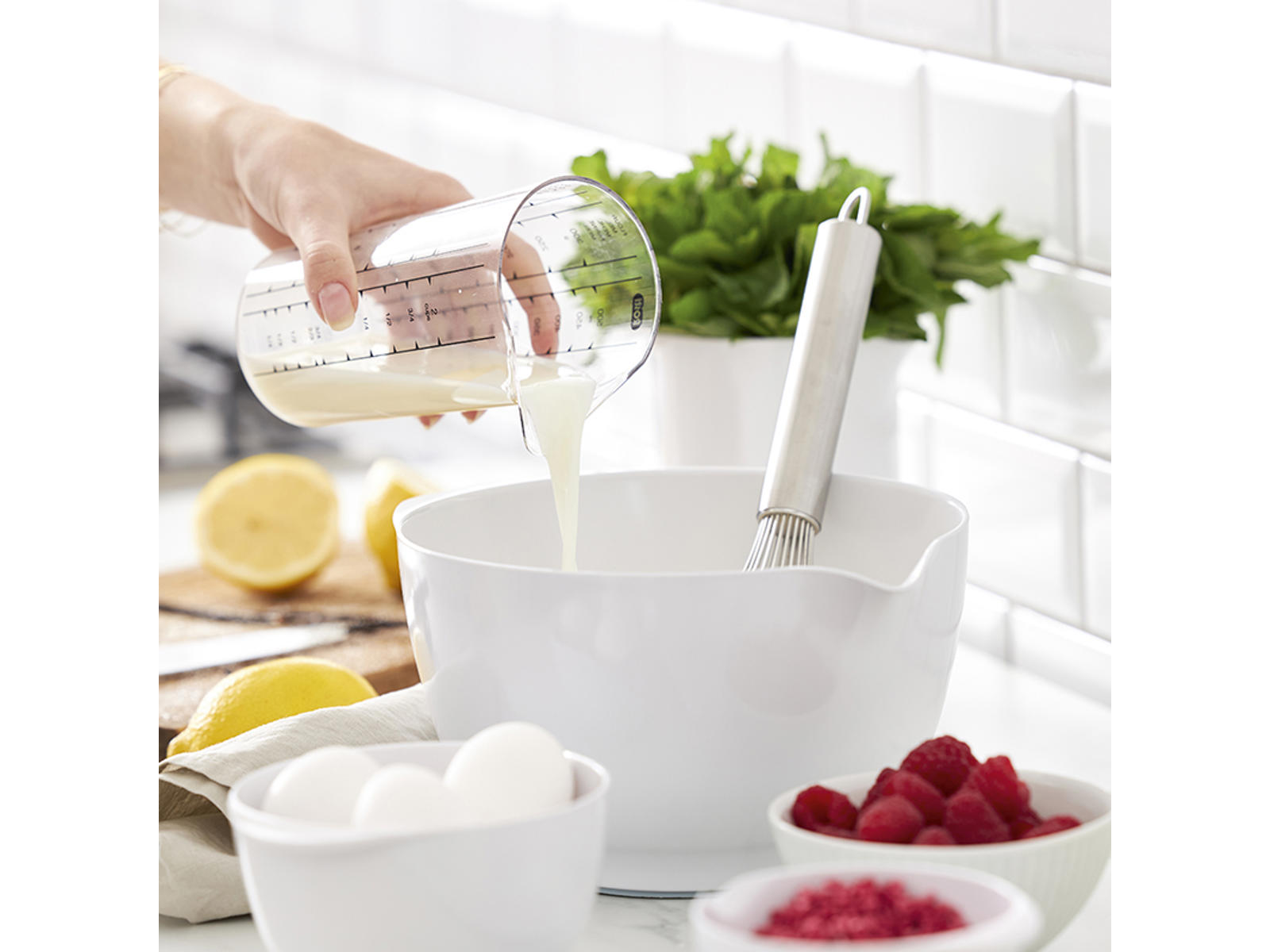 Ideel til de mindre, men essentielle opgaver i køkkenet som at røre dressinger, piske mayonnaise eller blande en portion pandekagedej. De høje kanter forhindrer spild, mens det ergonomiske design gør den let at håndtere.