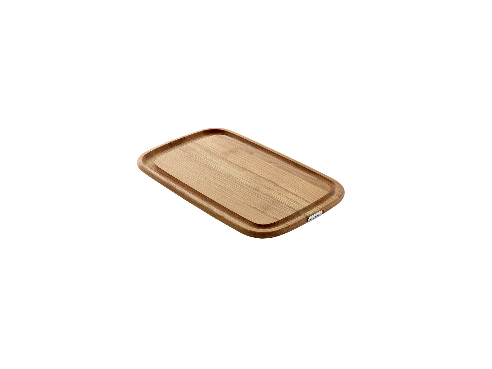 • Scanpan skærebræt i egetræ med praktisk saftrille