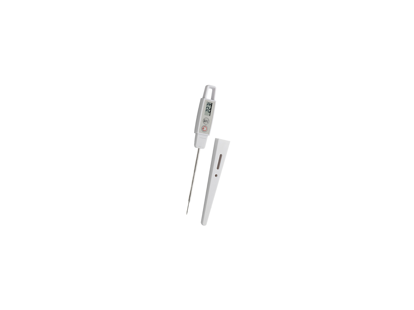 Med IP67-certificering er termometeret fuldstændig vandt og kan rengøres under rindende vand uden bekymringer. Det kompakte design (218 x 19 x 24 mm) og den lave vægt på kun 32 gram gør det nemt at have med sig. Termometeret leveres med praktisk plastikbeskyttelse og clip, så du let kan opbevare det i lommen eller på forklædet. Batteriet (1 x LR44 1.5V) medfølger, så du kan tage termometeret i brug med det samme.