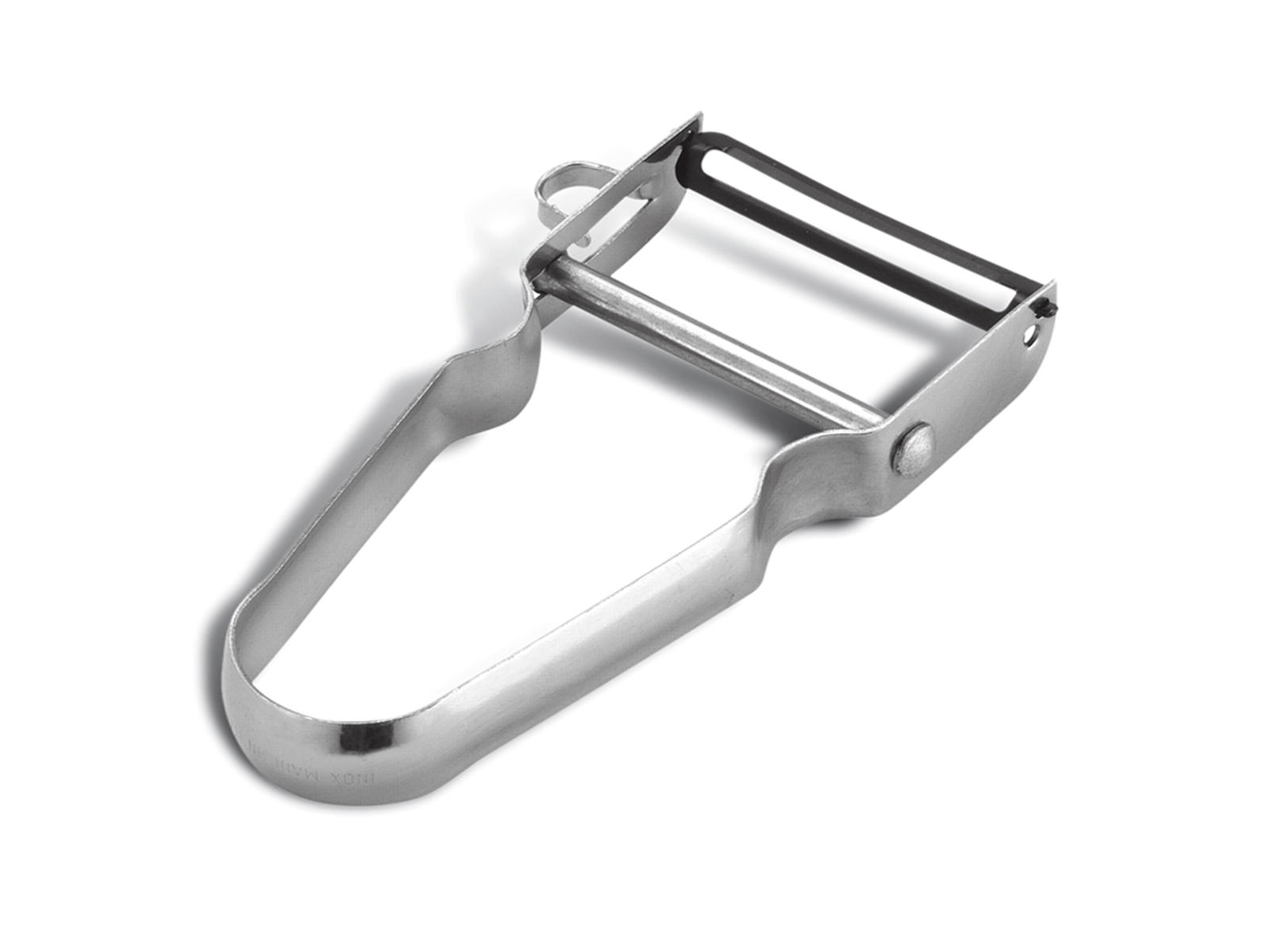 Denne tyndskræller fra Comas er fremstillet i robust 18/10 rustfrit stål med en elegant sølvfinish. Med en hærdet klinge skræller den effektivt kartofler og grøntsager, mens det ergonomiske design sikrer et behageligt greb under arbejdet. Den kompakte størrelse på 110 mm gør den let at håndtere og opbevare.