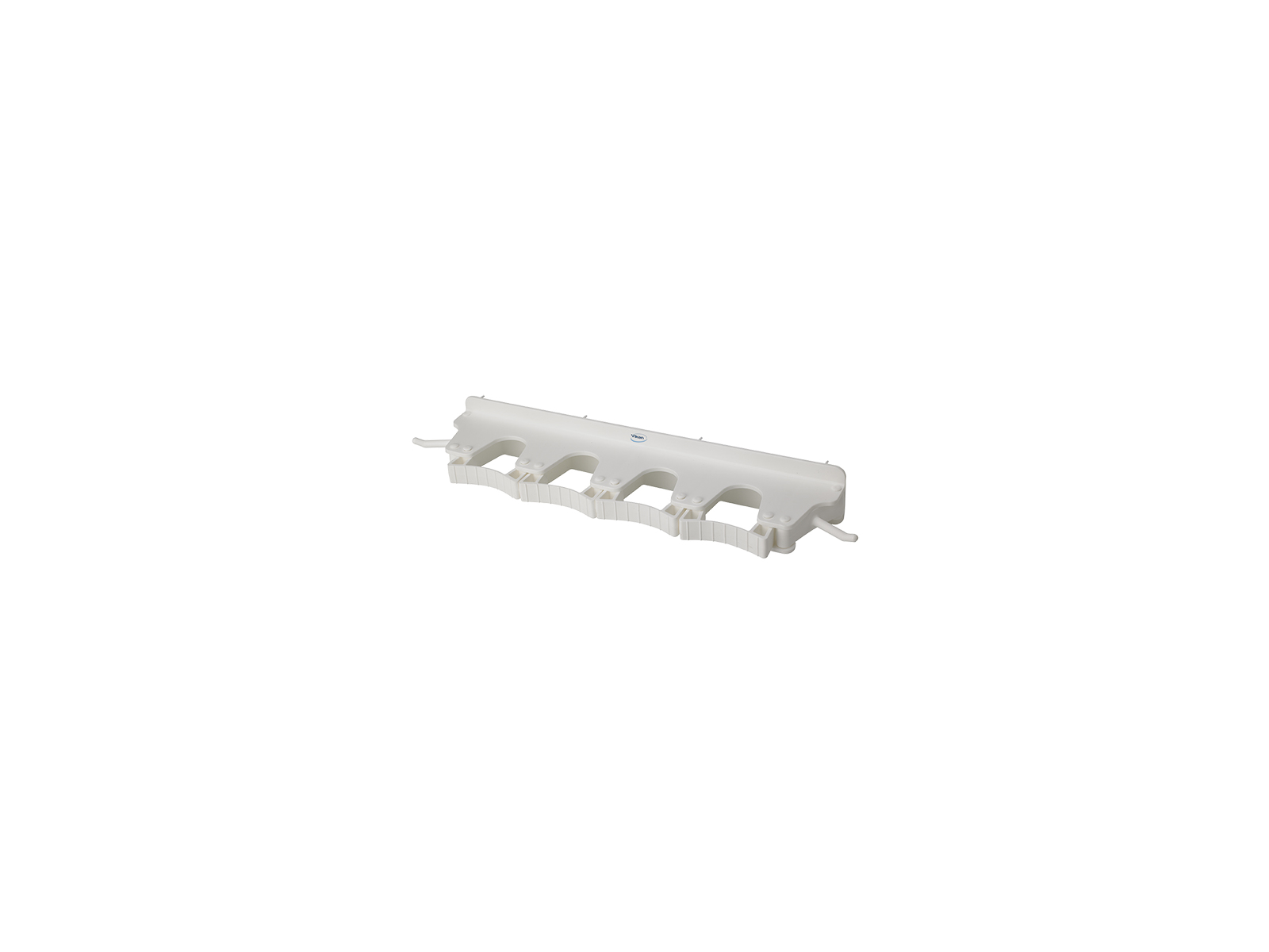 Vægophænget måler 420x87x48mm, hvilket giver god plads til 4-6 produkter afhængigt af deres størrelse. Det er fremstillet i slidstærk polypropylen (PP), som er modstandsdygtig over for de fleste rengøringsmidler. Med en vægt på kun 320 gram er ophænget let at håndtere og montere. Den blå farve gør det nemt at identificere og passer ind i de fleste professionelle rengøringsmiljøer.