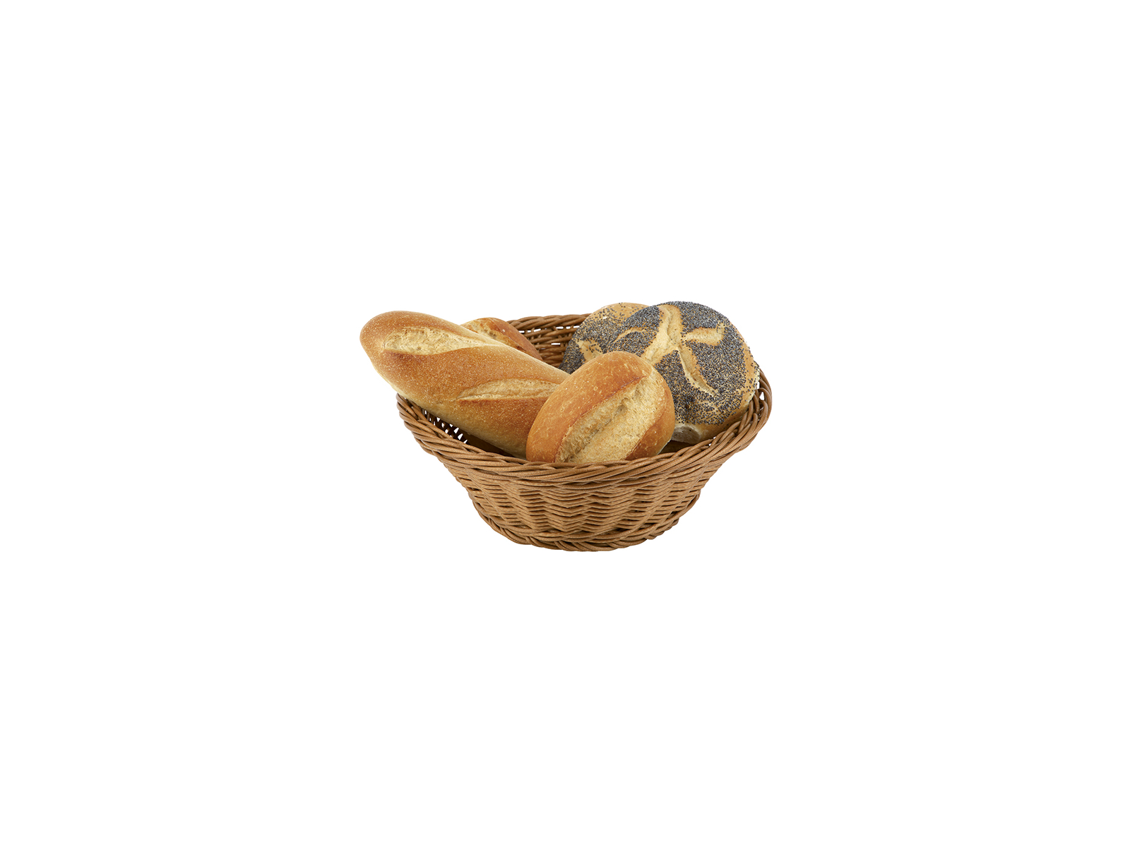 APS Economic brødkurv i rund form kombinerer praktisk funktion med et tidløst design. Kurven er fremstillet af holdbart polypropylen i en neutral beige farve, har en diameter på 25,5 cm og en højde på 8,5 cm, hvilket giver god plads til servering af forskellige typer brød og bagværk.
