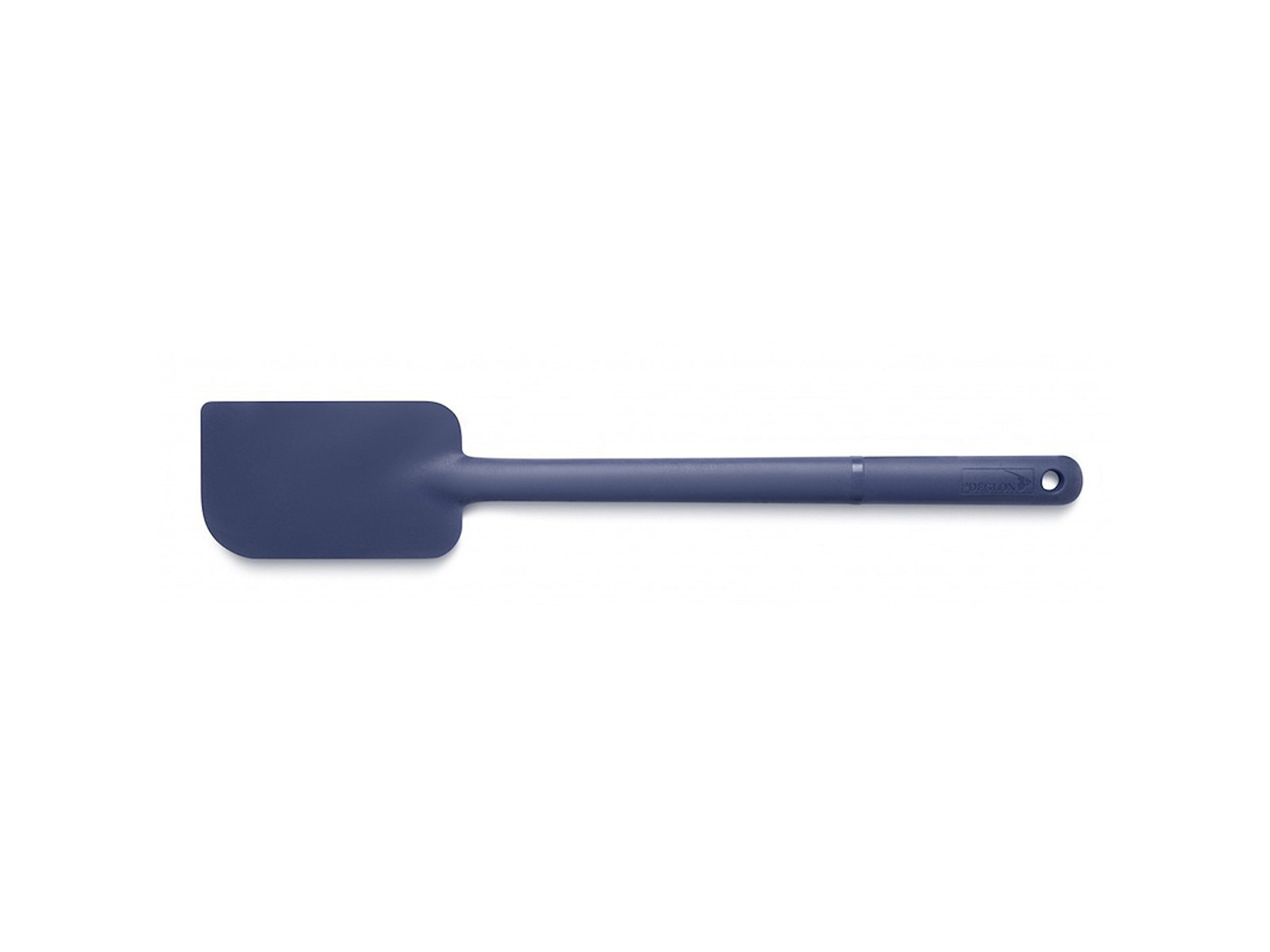 Dejskraberen er støbt i ét stykke silikone med en indstøbt rustfri stålkern, der giver den perfekte balance mellem fleksibilitet og stabilitet. Den ekstra længde på 40 cm gør det muligt at nå helt ned i bunden af dybe skåle, røremaskiner og gryder uden at få ingredienser på hænderne. Stop'Glisse-funktionen forhindrer skraberen i at glide ned i skålen, når du lægger den fra dig på kanten - en praktisk detalje i travle køkkener.