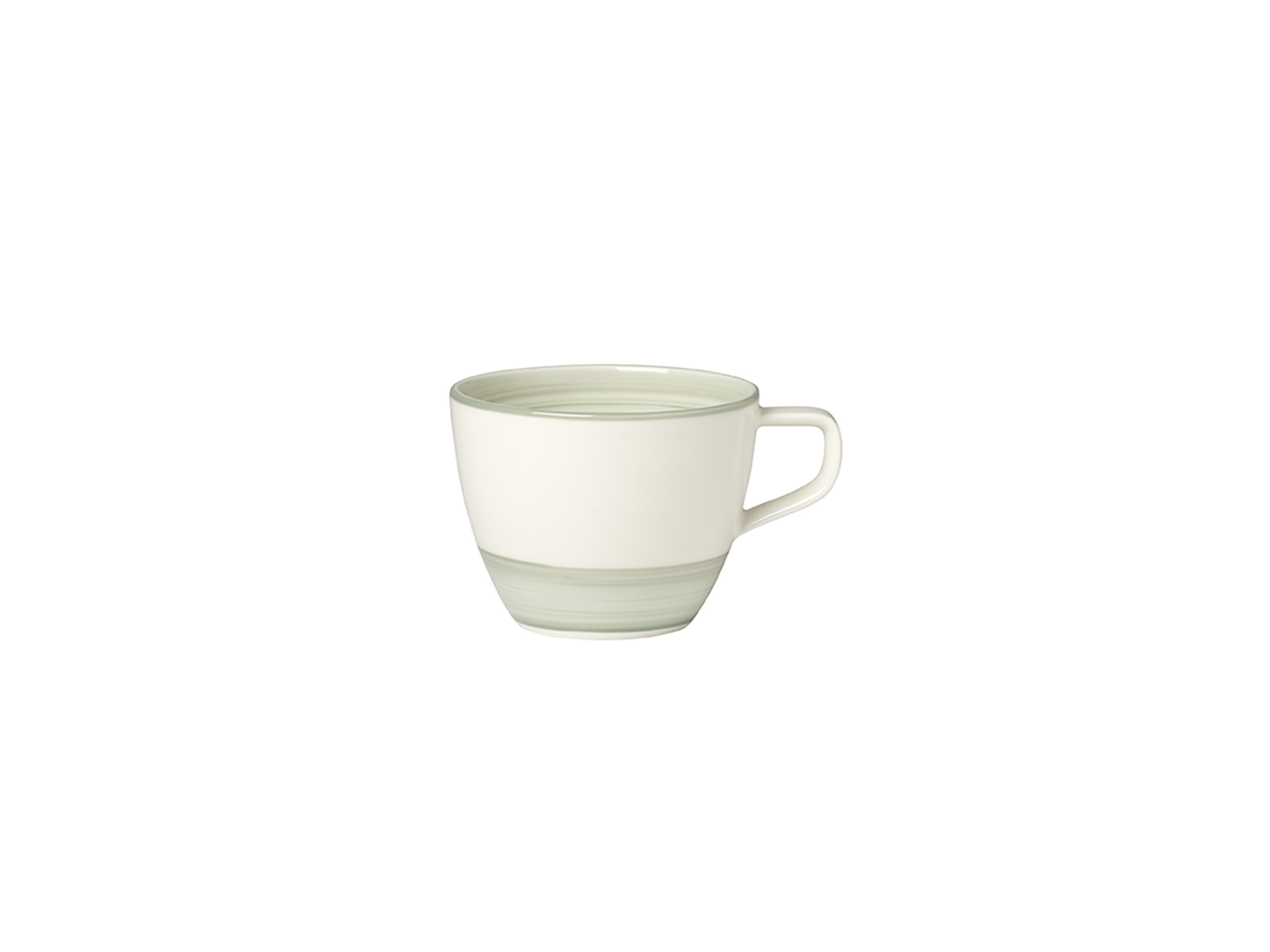 Denne elegante kop fra Villeroy & Boch's Artesano Nature-serie er fremstillet i premium porcelæn med en delikat håndmalet grøn finish. Med sin 0,25 liter kapacitet og komfortable hank forener koppen praktisk funktionalitet og stilfuldt design, der tåler både opvaskemaskine og mikrobølgeovn.
