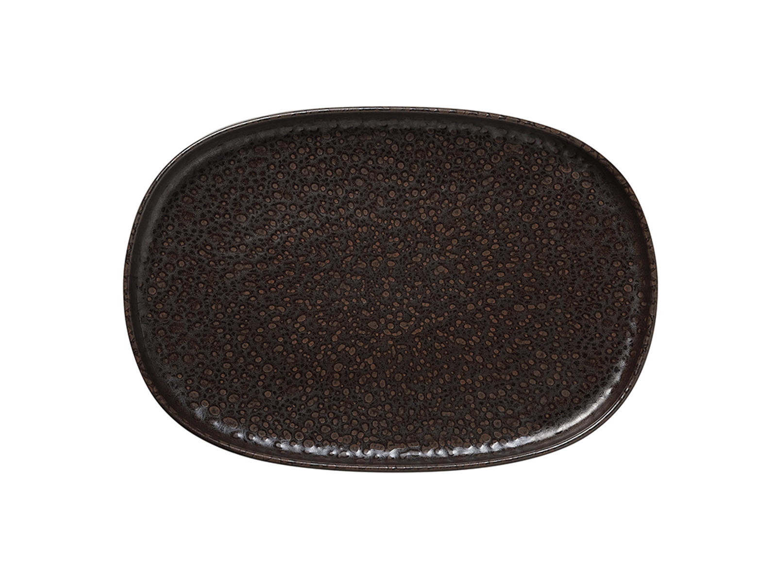 - Et alsidigt serveringsfad i elegant, mørkebrun stentøj med metallisk finish