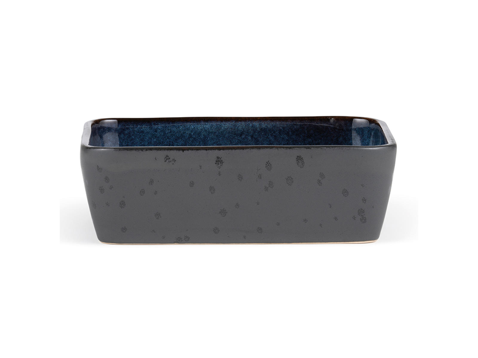 Dette rektangulære fad fra Bitz kombinerer elegant design med praktisk funktionalitet. Med sine 19x14 cm og en højde på 6 cm giver fadet et stilfuldt udtryk gennem kontrasten mellem den matte sorte stentøjsoverflade på ydersiden og den blanke mørkblå glasur indvendigt. Den reaktive glasur skaber unikke nuancer og mønstre, der gør hvert fad til et individuelt stykke.