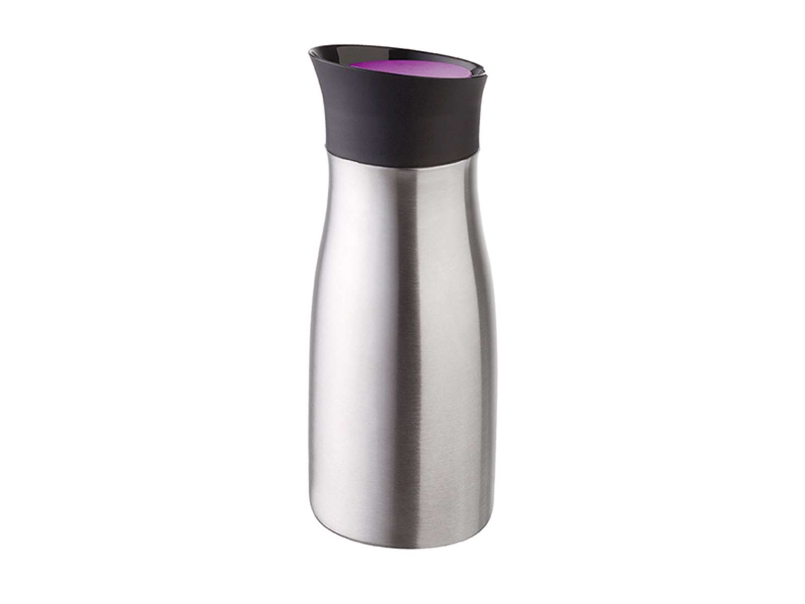 Helios Click 'N' Drink termokrus i 0,4 liter kapacitet er fremstillet af holdbart rustfrit stål med dobbelte vægge. Dette termokrus i den stilfulde blackberry farve kombinerer praktisk design med effektiv temperaturbevaring, så du kan nyde dine drikkevarer på den perfekte temperatur, uanset hvor du befinder dig.