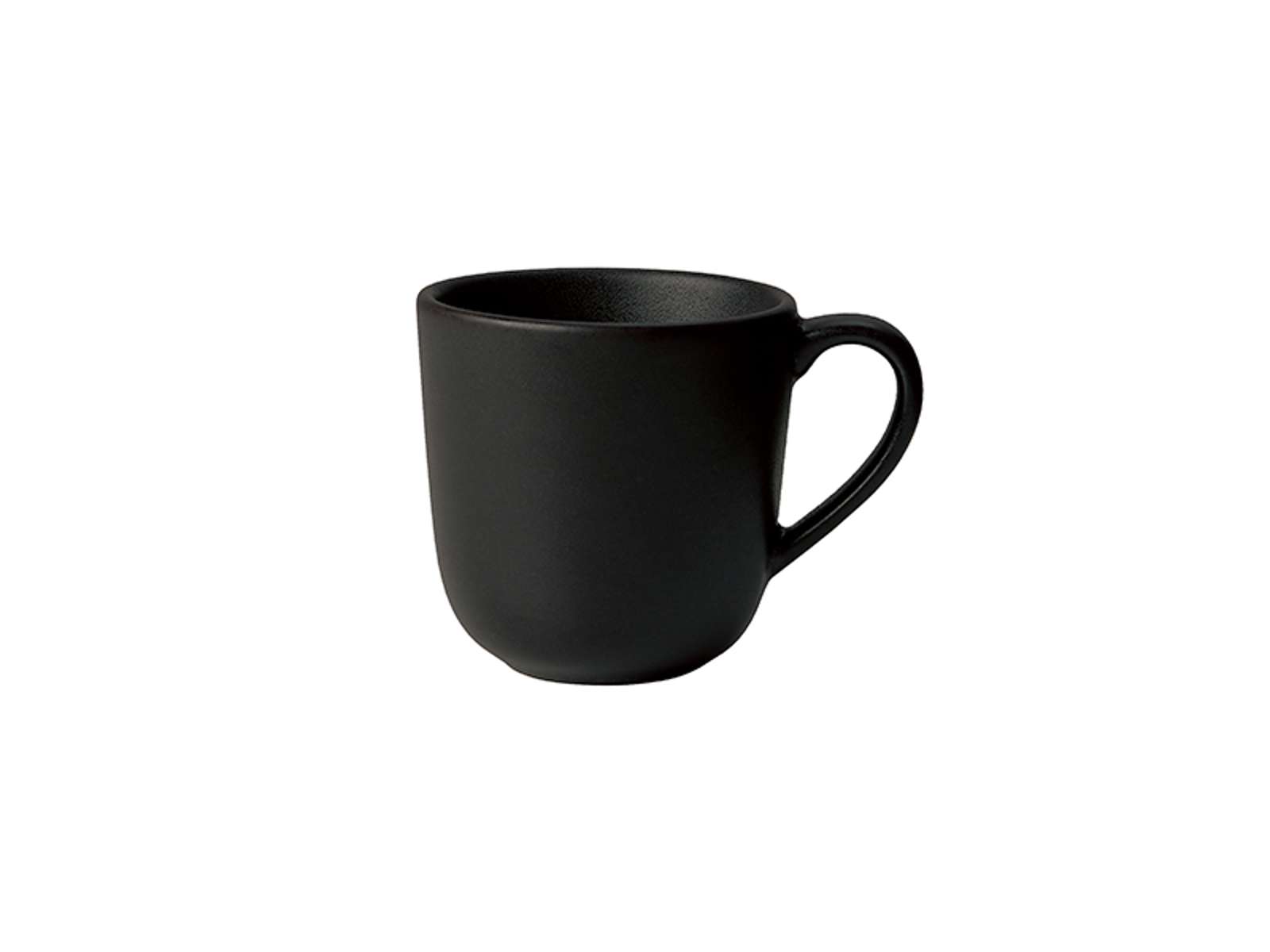 RAW Kaffekop i Titanium Black er fremstillet af kraftfuldt, dybt sort stentøj med en ridsefri glasering. Hver 20 cl kop er originalt håndlavet, hvor glaseringen udvikler sig forskelligt i farvemætning og tekstur, hvilket giver hvert produkt et unikt og varierende udseende. Dette robuste stentøj er brændt ved over 1200°C for at sikre ekstra styrke og holdbarhed i hverdagen.