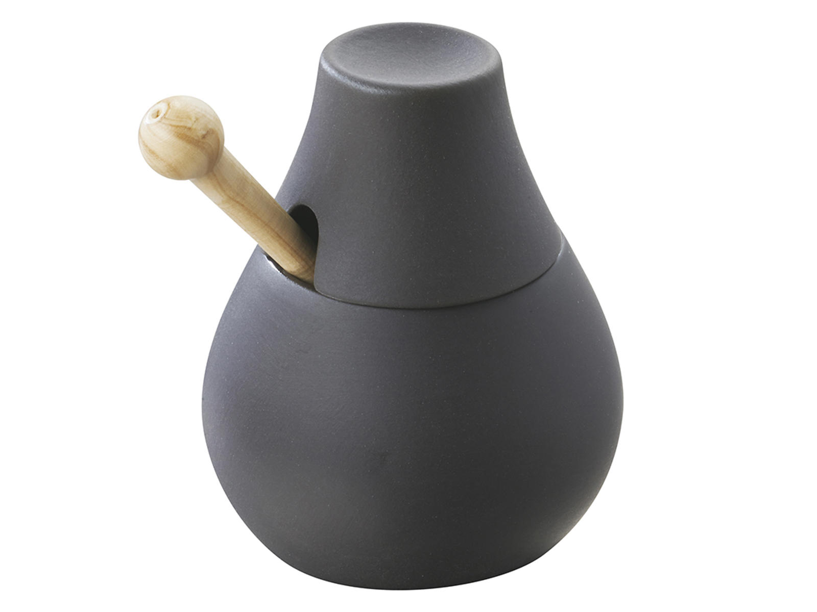 Den kompakte størrelse på 90x73mm gør gryden nem at placere på bordet uden at optage for meget plads. Den medfølgende ske sikrer, at serveringen forbliver ren og kontrolleret, mens den integrerede form gør, at skeen altid har sin plads. Skifer-finish giver et sofistikeret udtryk, der passer til både moderne og klassiske bordopdækninger.