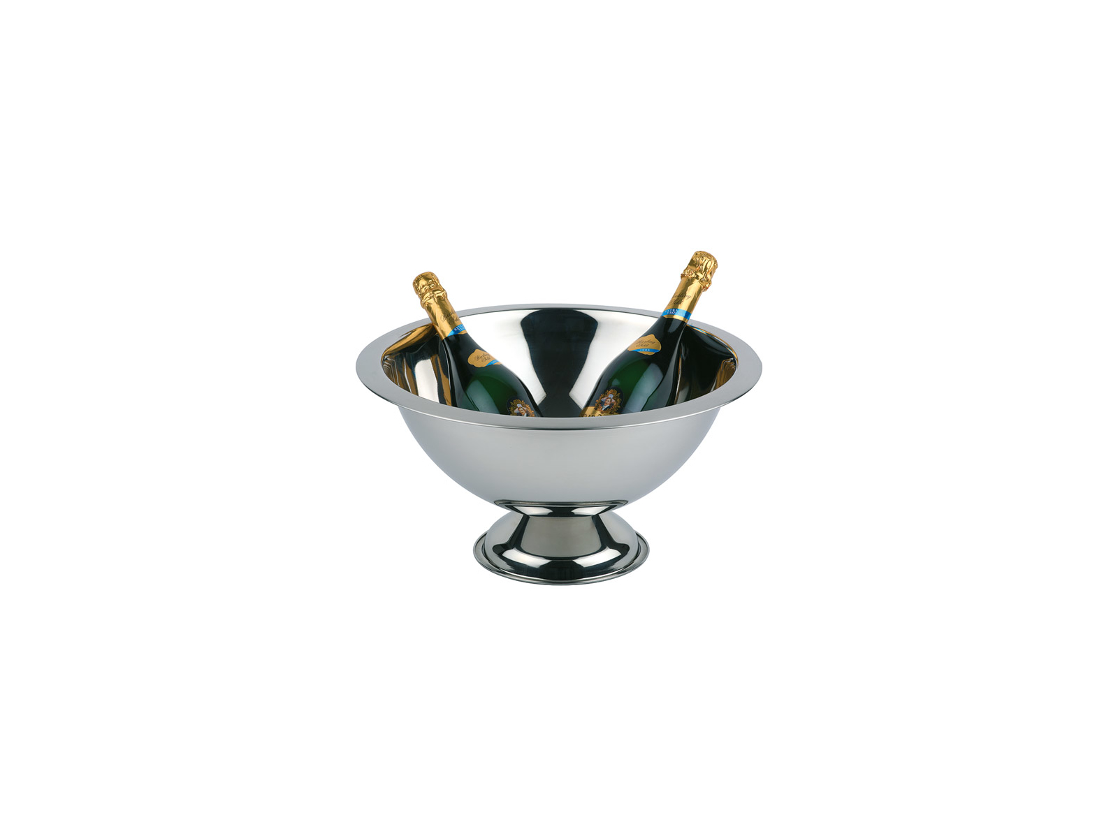 Denne stilfulde champagnebowle fra APS kombinerer funktionalitet med et elegant design. Med en diameter på 45 cm og en højde på 23 cm giver bowlen rigelig plads til at præsentere og afkøle flere flasker champagne eller andre drikkevarer samtidig. Fremstillet i holdbart rustfrit stål med en flot spejlblank finish og satinpolerede kanter.
