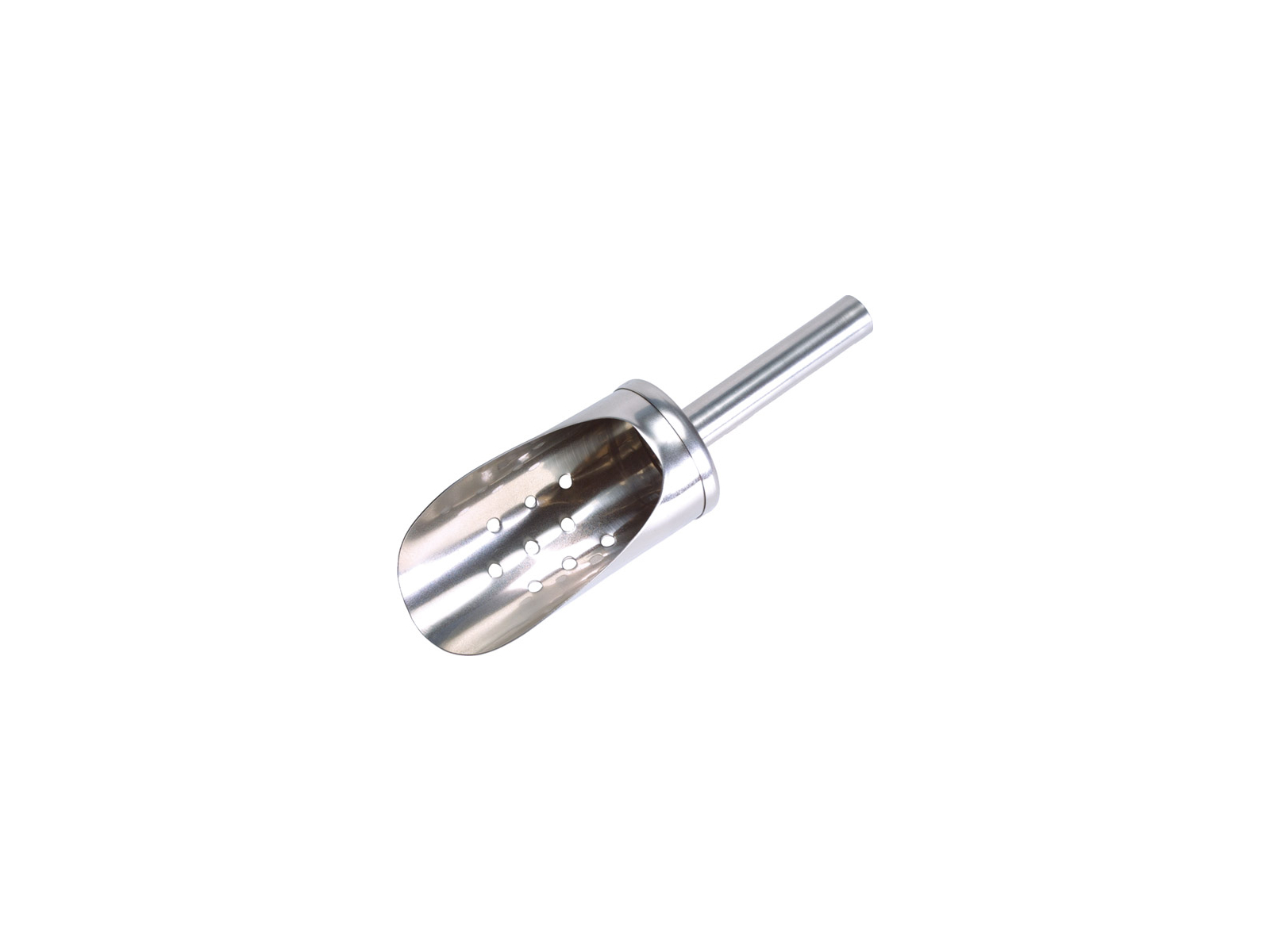 Denne store isske fra APS er fremstillet i holdbart rustfrit stål med et praktisk perforeret design, der lader smeltevand løbe tilbage i isboksen. Med en diameter på 5 cm og en højde på 195 mm er den designet til effektiv og hygiejnisk håndtering af is i både professionelle og private sammenhænge.