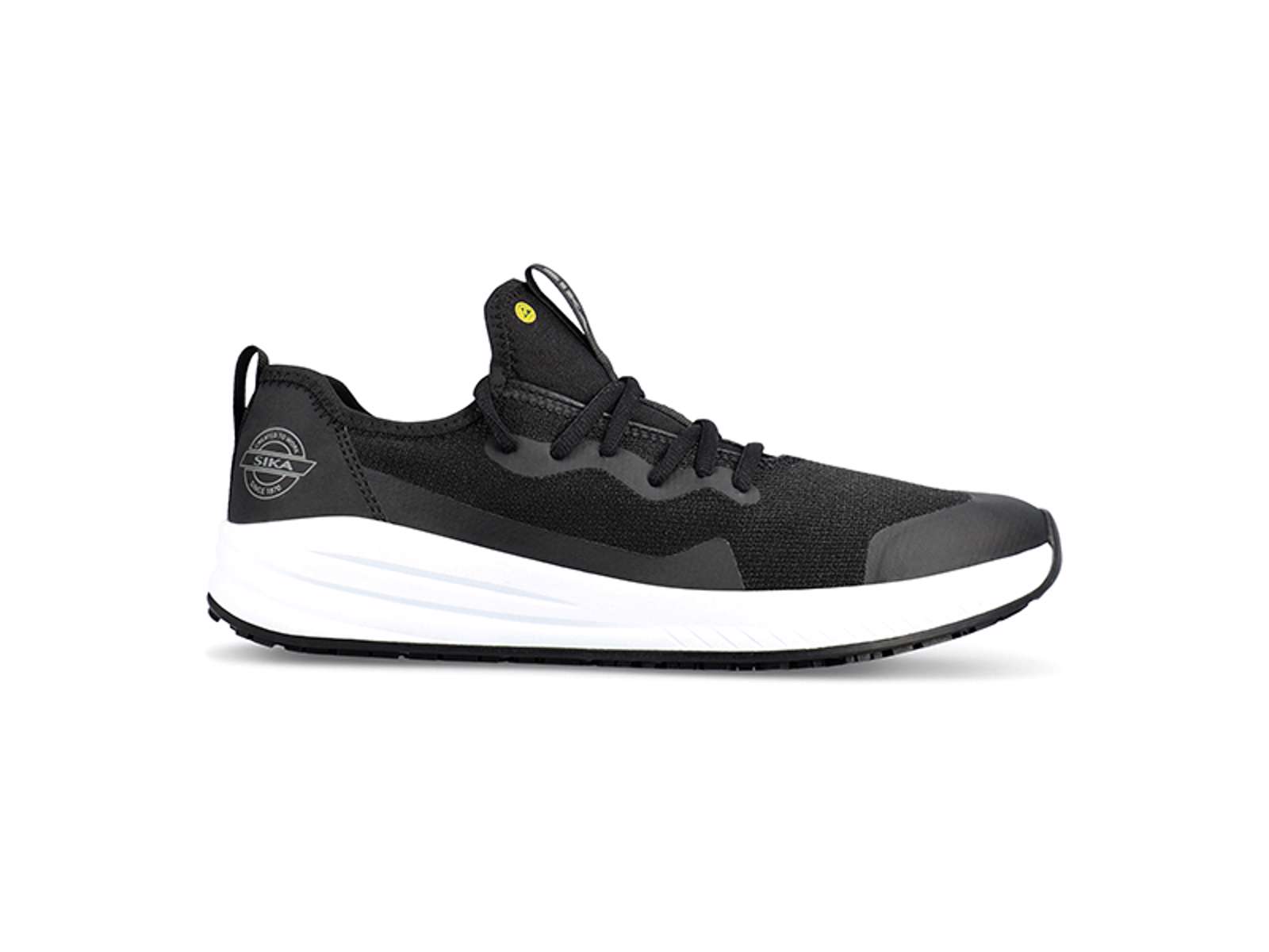 Arbejdssko designet som en sneaker. Let, slidstærk og komfortabel. Blød og fleksibel overdel af åndbart strik/polyester og med svedtransporterende inderfór. Ekstra skridhæmmende, fleksibel og stødabsorberende ydersål, som giver et godt fodfæste på glatte overflader. Med stabiliserende gelenk, som reducerer risikoen for vridskader. Indlægssålen er åndbar, blød og svedtransporterende. Skoene er metalfri, PVC-fri og ESD-godkendte. Kan vaskes ved 40 °C.