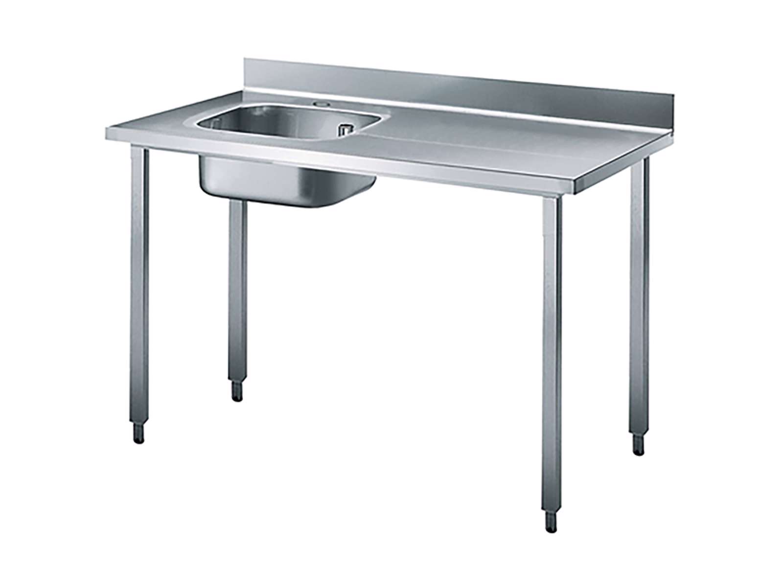 • Rustfrit stålbord med vask til professionelle køkkener