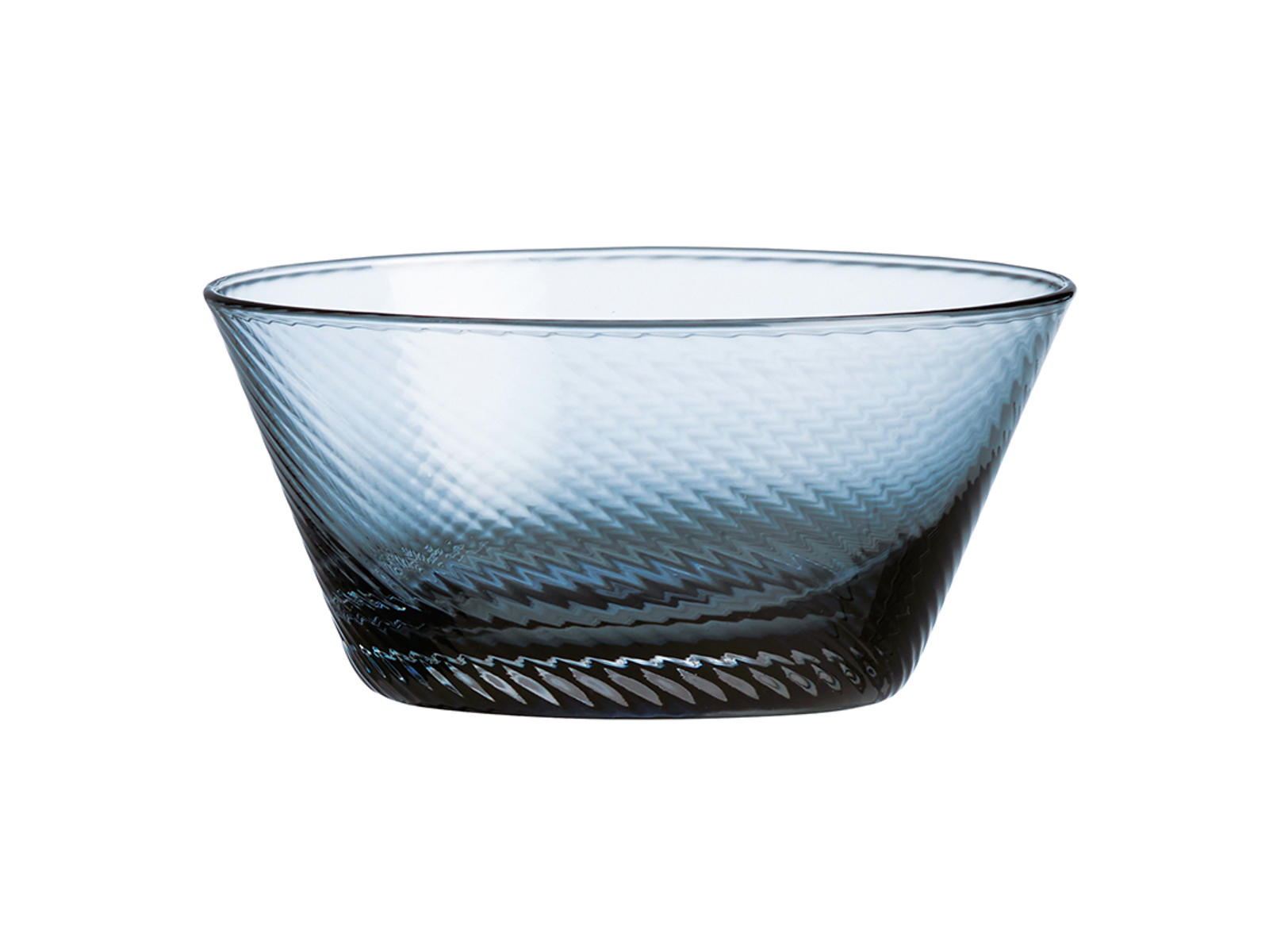 - En håndlavet mundblæst glasskål med unikt swirl-mønster