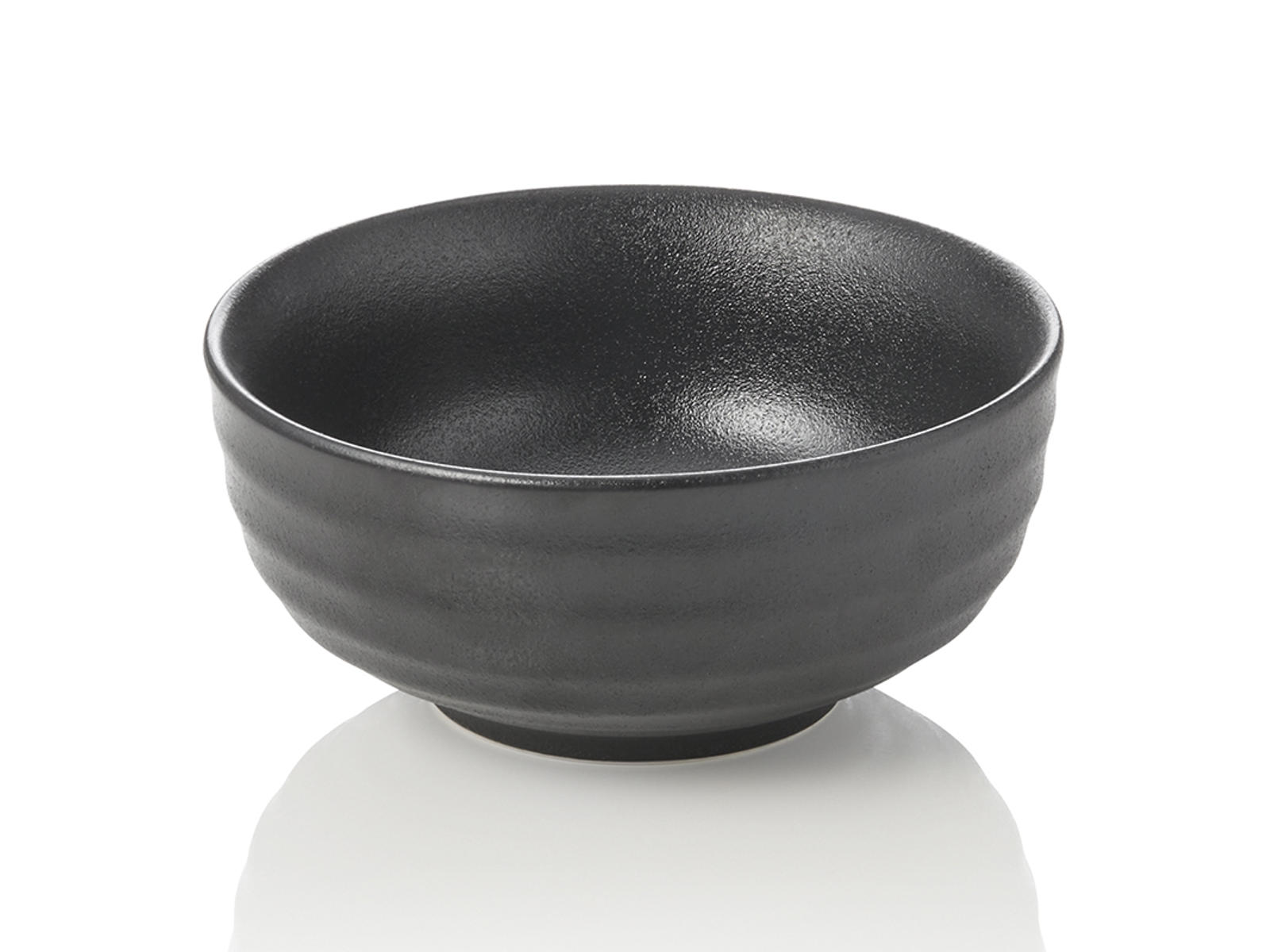 - En holdbar og stilfuld skål i sort porcelæn med tekstureret overflade