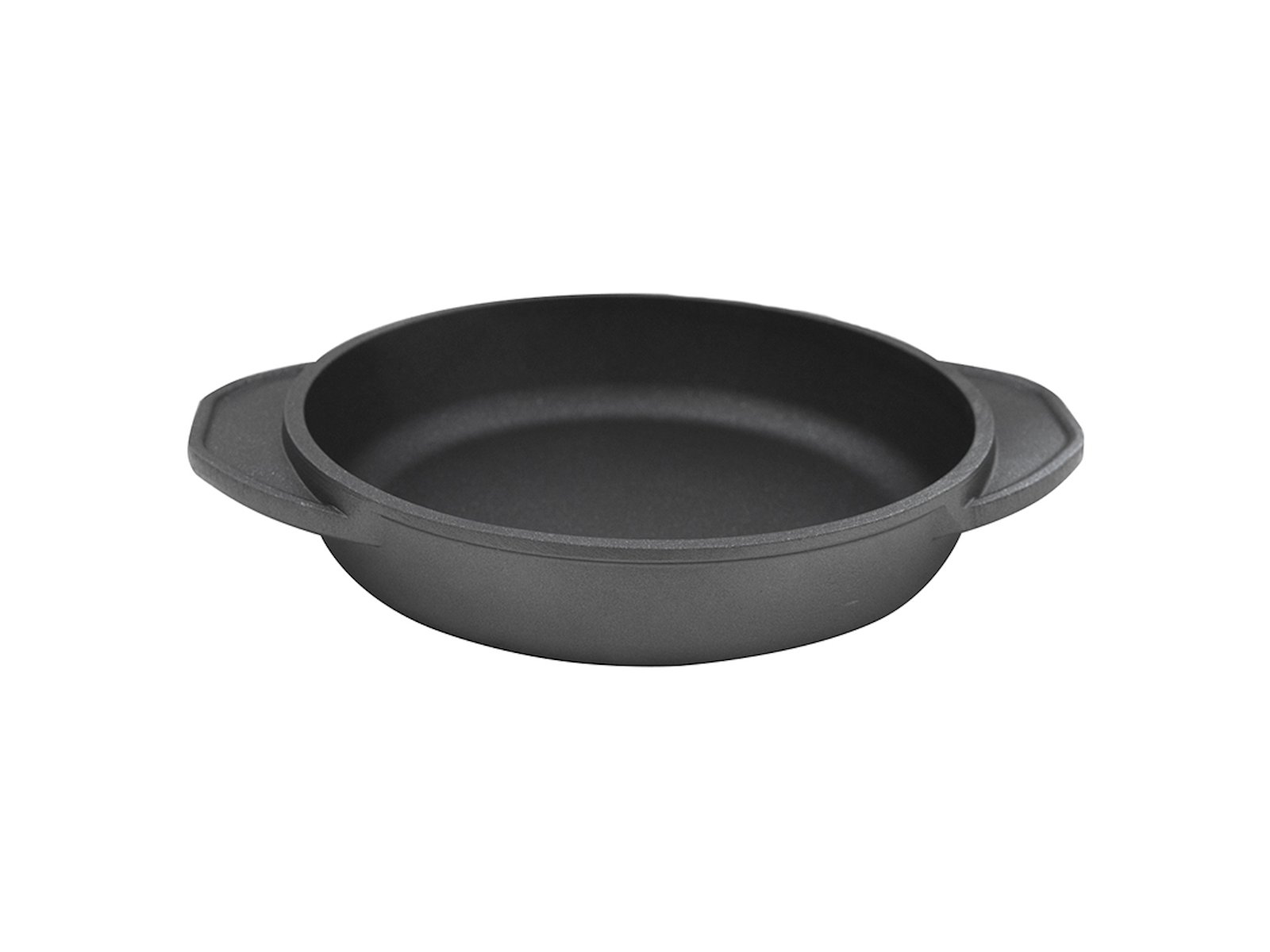 Denne runde bradepande i støbt aluminium med non-stick belægning er både slidstærk og let at håndtere. Med en diameter på 16 cm og to praktiske håndtag giver den fuld kontrol under madlavningen, mens den lave form sikrer nem servering direkte fra panden.