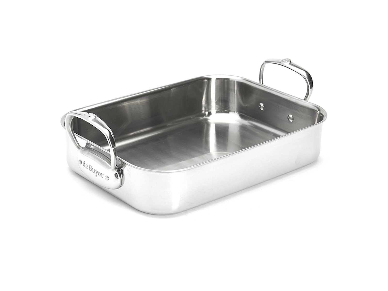 Denne 35x25 cm bradepande fra De Buyers Affinity-serie kombinerer rustfrit stål og aluminium i en gennemtænkt multilagskonstruktion. Med de let buede sider, afrundede hjørner og robuste støbte håndtag er bradepanden designet til både funktionalitet i køkkenet og elegant servering direkte ved bordet. Ideel til tilberedning af alt fra stege og fisk til grøntsagsretter.
