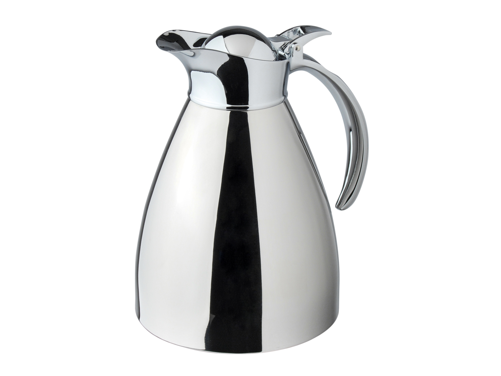 Termokanden er udstyret med et funktionelt klaplåg, der muliggør enhåndsbetjening - særligt praktisk når du skal servere for flere personer samtidig. Den ergonomiske hank og præcise hældetud i forkromet fuldmetal sikrer, at serveringen foregår uden spild, mens det højglanspolerede ydre i rustfrit stål tilfører et tidløst og eksklusivt udtryk. Den solide konstruktion med en vægt på 970 gram giver stabilitet, når kanden står på bordet.