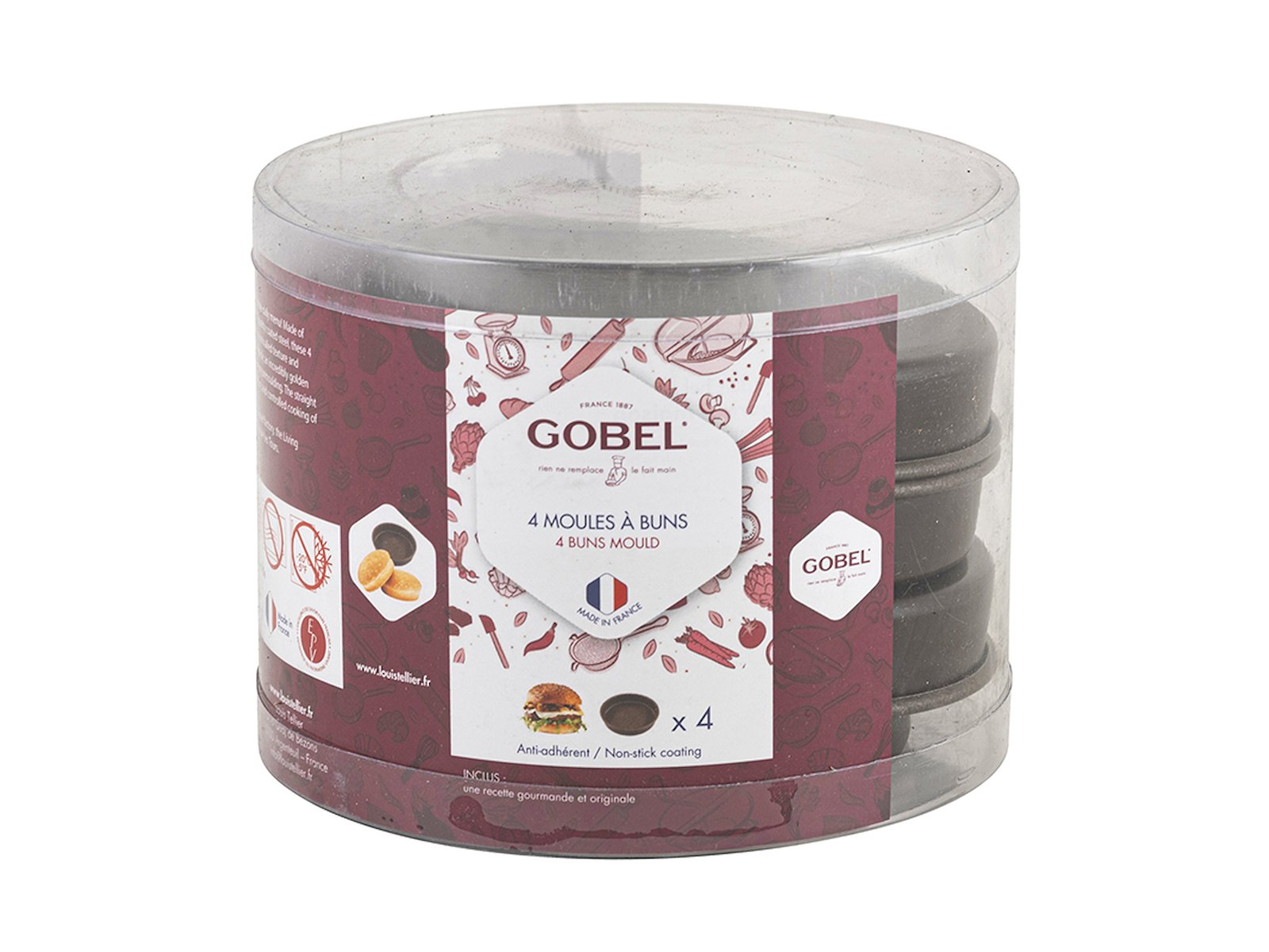 Disse fire brødforme fra Gobel er specialdesignet til at bage ensartede, runde burgerboller med en diameter på 12 cm. Fremstillet i robust stål med dobbelt non-stick belægning sikrer formene, at dine burgerboller holder den perfekte facon og får en jævn, gylden overflade. Formene har en højde på 90 mm, hvilket giver god plads til dejens hævning.