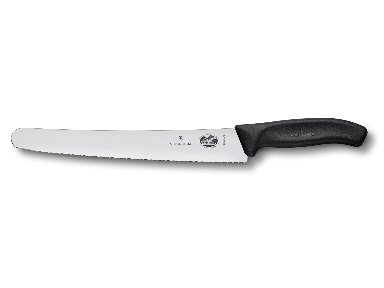 Denne Victorinox universalkniv med bølgeskær på 26 cm er udviklet til at håndtere forskellige skæreopgaver i køkkenet. Det bølgede skær griber effektivt fat i maden og forhindrer den i at glide under skæring. Med et ergonomisk Fibrox-håndtag og et kraftigt, stabilt blad i rustfrit stål giver denne kniv dig kontrol og præcision.