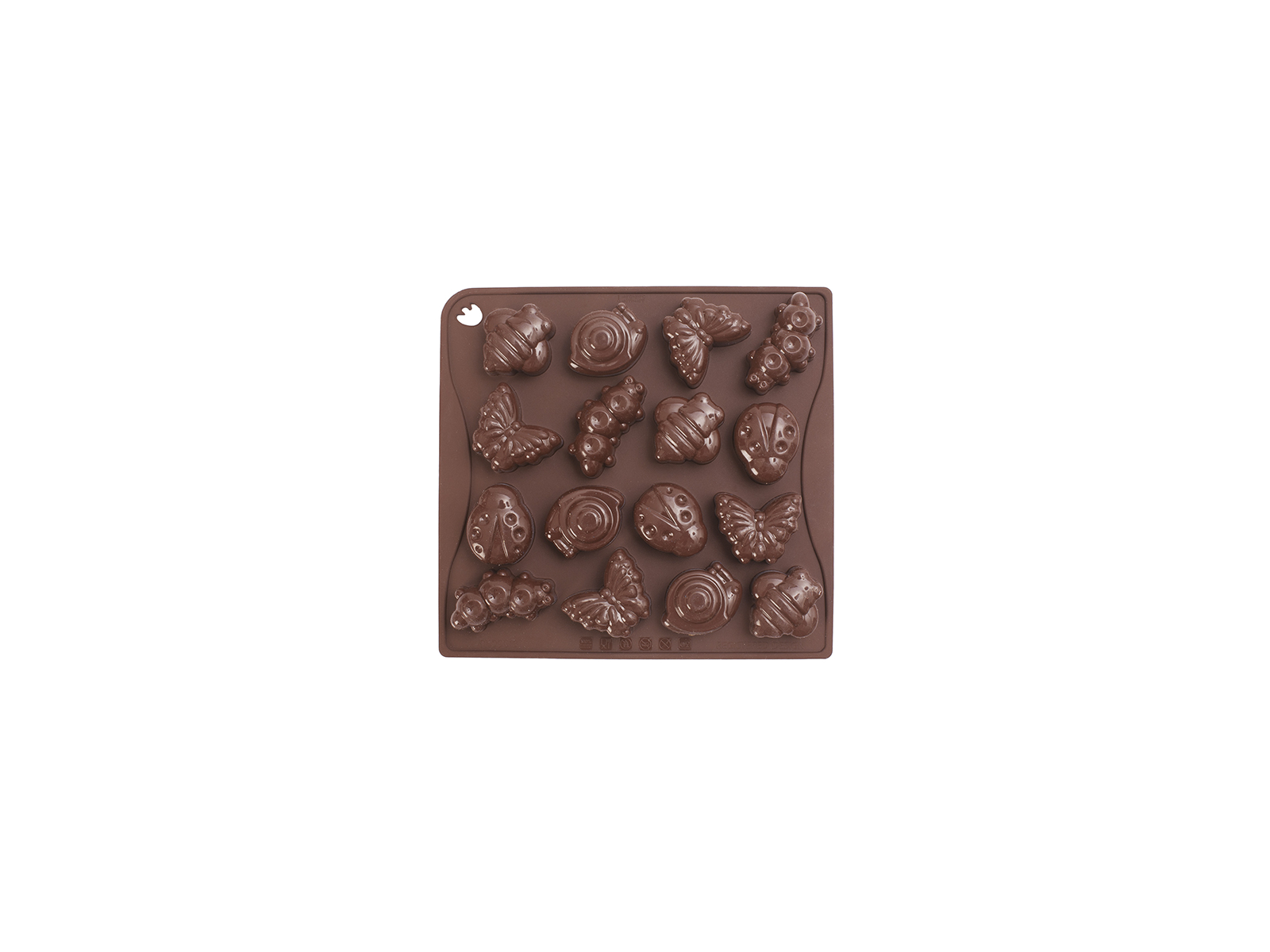 Pavonis chokoladeform Summer i brun silikone er designet til at skabe 16 detaljerede chokolader med et charmerende sommertema. Formen måler 180x175x22mm og er fremstillet af førsteklasses silikone, der sikrer nem afformning og holdbare resultater. Den er temperaturbestandig fra -40°C til +230°C, hvilket giver dig fleksibilitet i køkkenet.