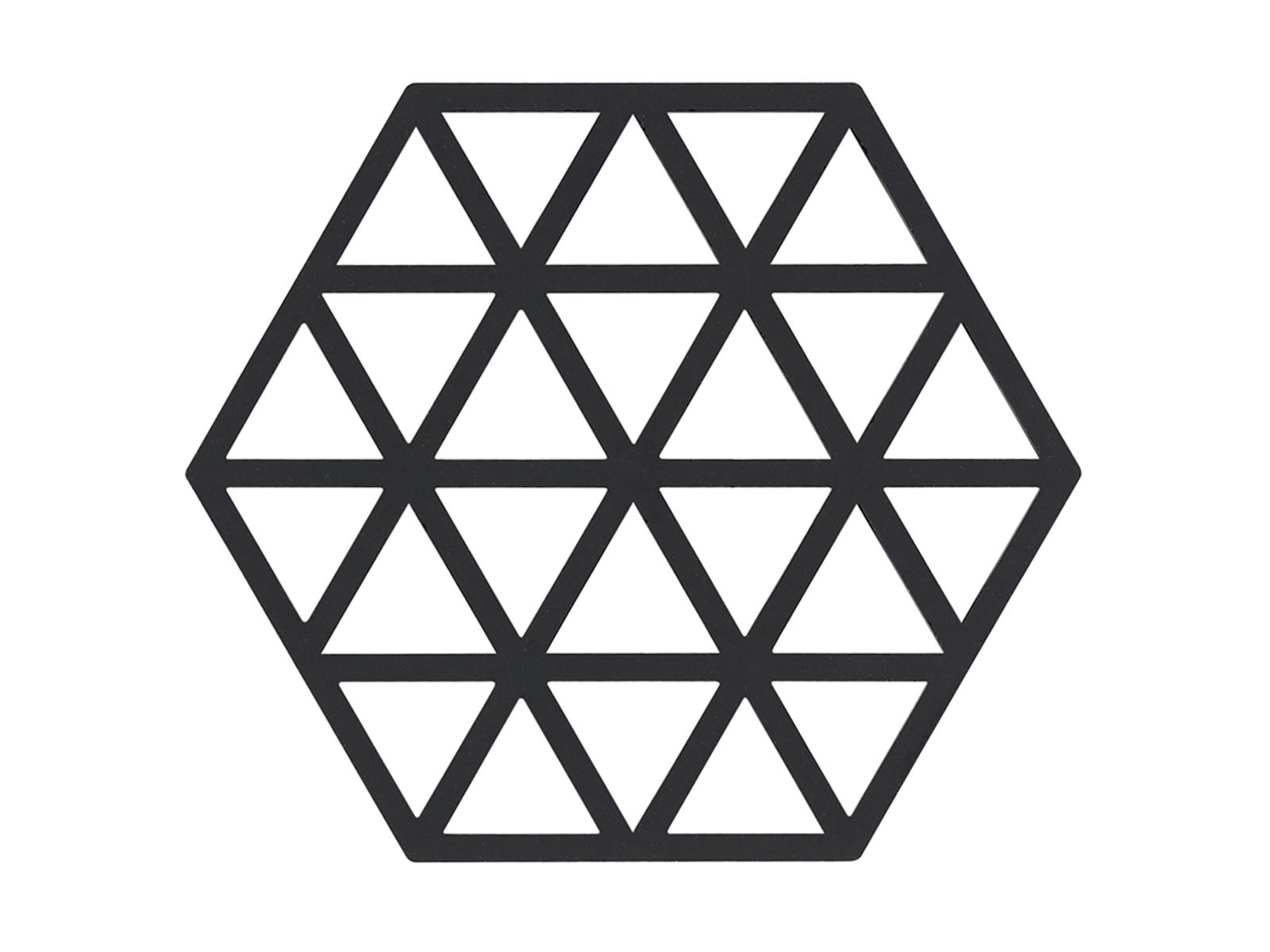 Zone Denmark Triangles bordskåner i sort silikone kombinerer praktisk beskyttelse med et stilrent, grafisk design. Denne 16x14 cm store bordskåner er fremstillet af varmebestandigt silikone, der tåler temperaturer op til 250°C. De karakteristiske trekantmønstre gør bordskåneren til både et funktionelt redskab og et dekorativt element på bordet.