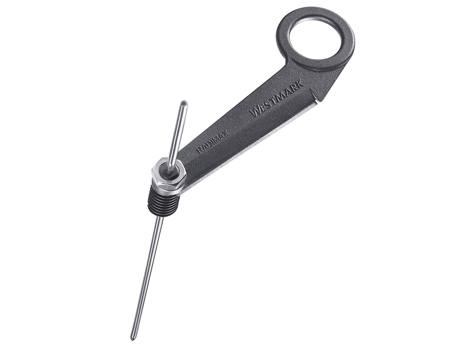 Den ekstra lange centreringsstang er hjertet i Radimax spiralskæreren. Den holder grøntsagen stabilt på plads gennem hele skæreprocessen, hvilket sikrer jævne, kontinuerlige spiraler uden afbrydelser. Konstruktionen forhindrer grøntsagen i at knække undervejs - et almindeligt problem ved traditionelle spiralskærere. Kombinationen af aluminium, rustfrit stål og holdbar POM-plast giver redskabet både styrke og let vægt på kun 60 gram.