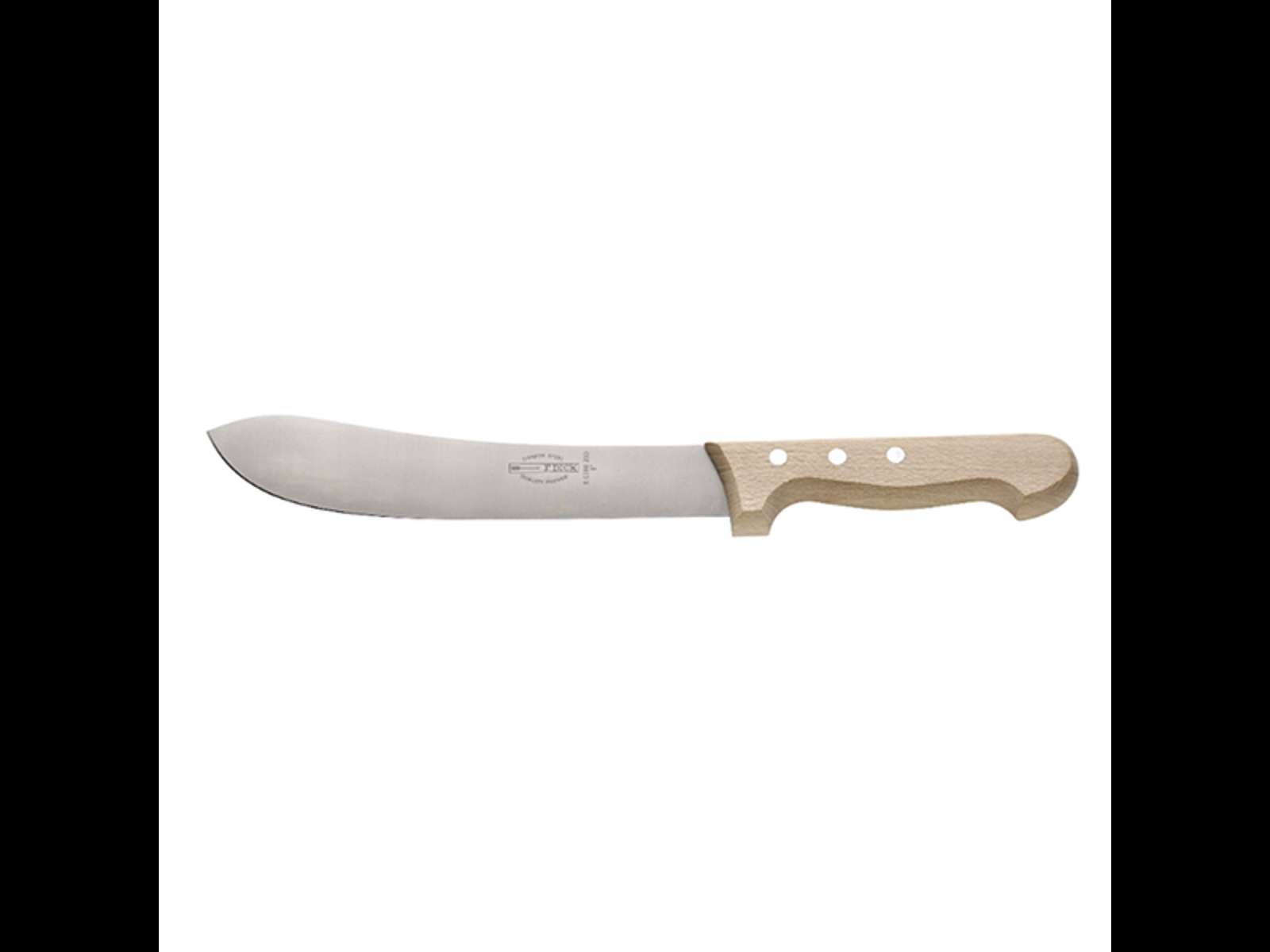 Denne F. Dick skærekniv har en total længde på 398 mm med en bladlængde på 250 mm. Klingen har en bredde på 52 mm og en højde på 19 mm. Den vejer kun 180 gram, hvilket giver god balance mellem styrke og manøvredygtighed. Kombinationen af kulstofstålsklinge og træskæfte sikrer både holdbarhed og komfort under brug.