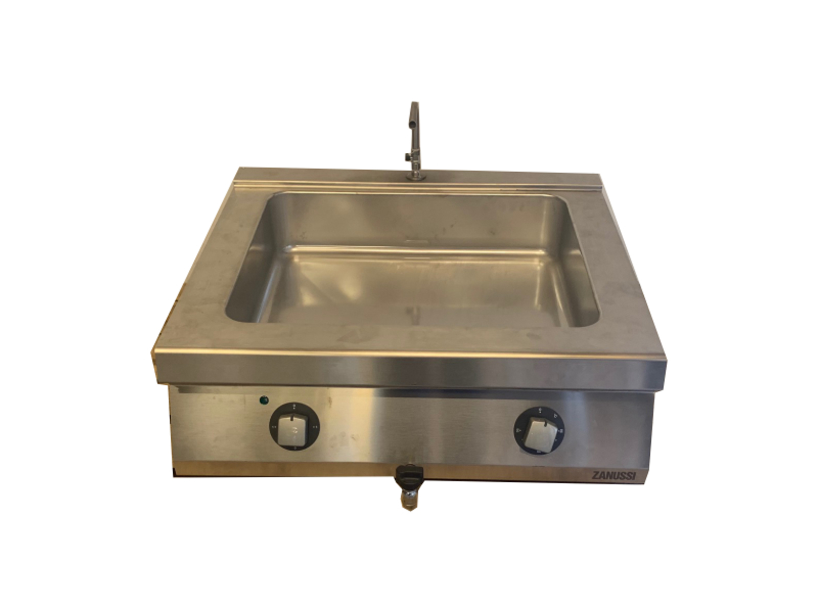 Dette professionelle vandbad fra Zanussi i rustfrit stål er designet til præcis varmeholdning af mad i gastronomiske miljøer. Enheden er en demo-model i ny stand, komplet med praktisk vandhane og 16 Amp tilslutning. Med sine kompakte dimensioner på 800x700x260 mm passer det ind i de fleste professionelle køkkener.