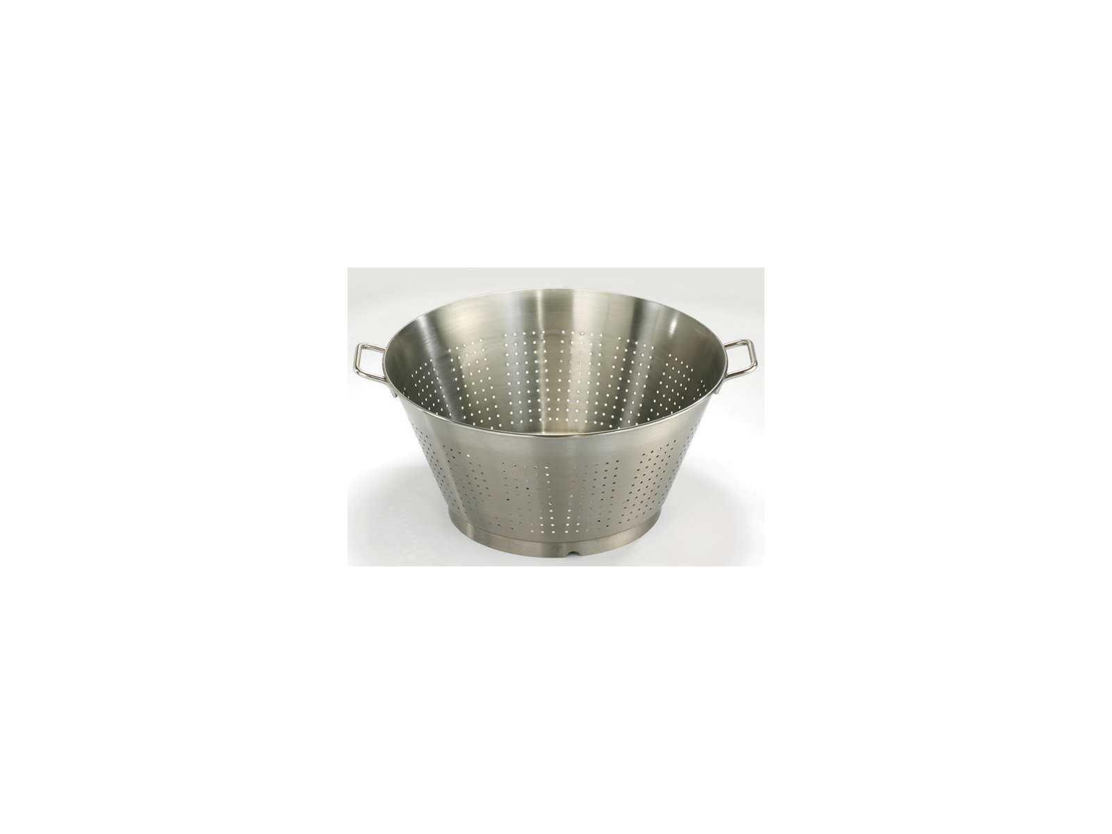 Den robuste konstruktion i 18/10 rustfrit stål gør dette dørslag særdeles modstandsdygtigt over for både slid, korrosion og påvirkning fra syreholdige fødevarer. Den koniske form sikrer ekstra stabilitet under brug, så du undgår at dørslagets indhold vælter ud under håndtering. Med en vægt på 2,4 kg står det solidt på bordpladen, mens du arbejder med det.