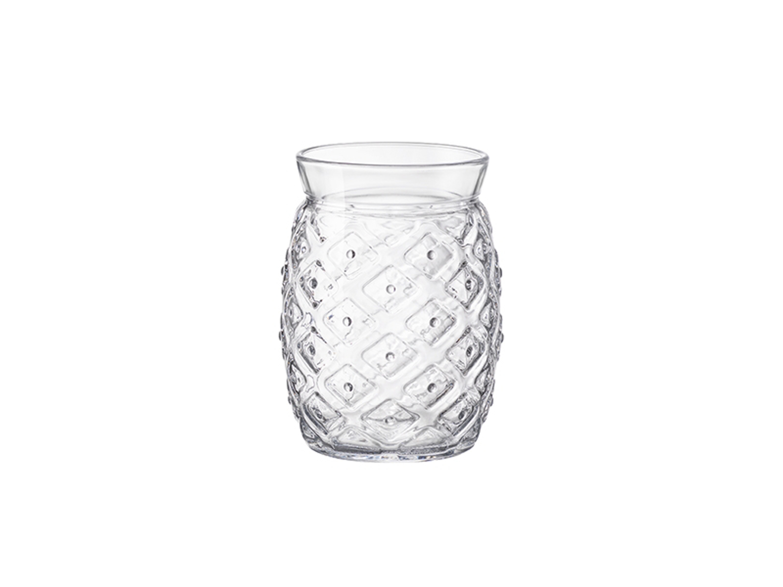 Bormioli Bartender drinksglas på 45,5 cl kombinerer elegance med funktionalitet i et smukt tiki-inspireret design. Det detaljerede geometriske mønster og det tropiske ananas-udtryk gør glasset til et blikfang på ethvert bord. Fremstillet af hærdet glas sikrer det både holdbarhed og en førsteklasses drinkoplevelse.