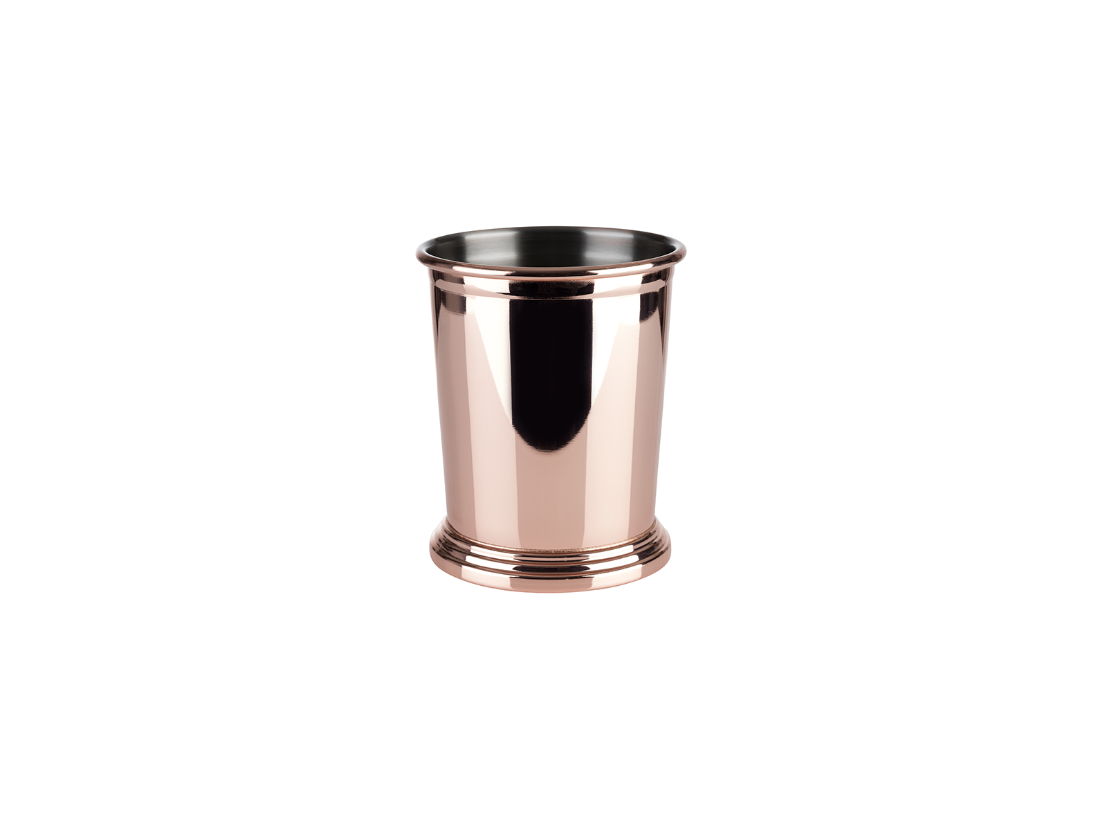 Den blanke kobber-finish giver kruset et luksuriøst udtryk, der kan løfte selv den enkleste servering. Den cylindriske form med en diameter på 8,5 cm og højde på 10 cm sikrer god balance og et behageligt greb, selvom kruset ikke har håndtag. Det rustfrie stål gør kruset robust og velegnet til daglig brug i professionelle miljøer, hvor holdbarhed er afgørende.
