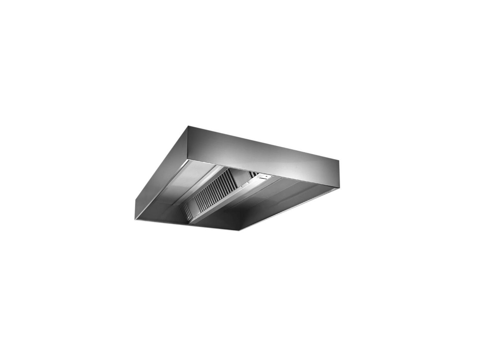 Emhætten er fremstillet af rustfrit stål (430 AISI), hvilket gør den modstandsdygtig over for både slitage og korrosion. De udvendige paneler har opadvendte kanter, der beskytter personalet mod skader under rengøring og daglig brug. Den integrerede afløbsrende med fedtopsamlingsbeholder (304 AISI) gør vedligeholdelsen enkel og sikrer, at køkkenet forbliver rent og hygiejnisk. De skjulte paneler bidrager til den effektive udsugning, mens udløbshullerne er nøje dimensioneret for at opretholde det optimale tryk.
