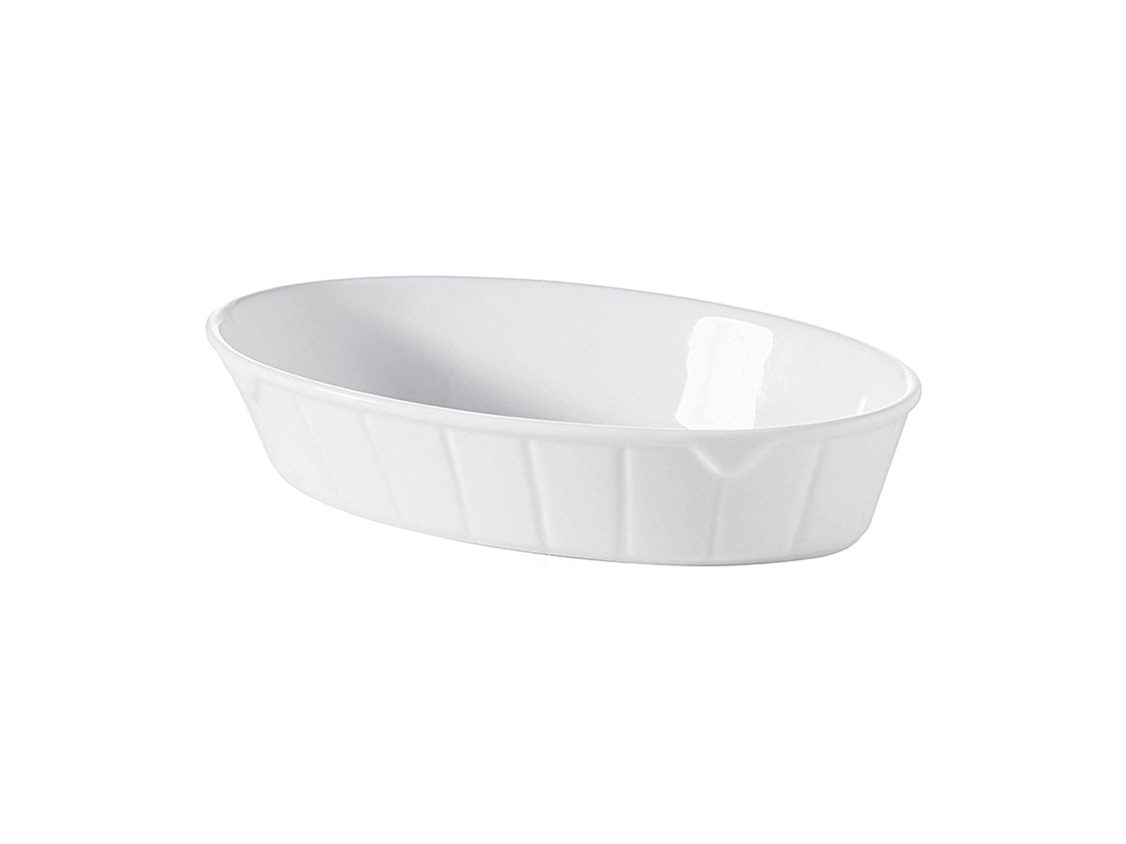 Den ovale form giver fadet et klassisk udtryk og gør det velegnet til en lang række serveringsopgaver. Fadets størrelse på 20x12 cm er perfekt til individuelle portioner eller mindre serveringer, hvor maden skal præsenteres indbydende. Den hvide keramik fremhæver madens farver og giver en flot kontrast, der løfter den visuelle præsentation af retterne.
