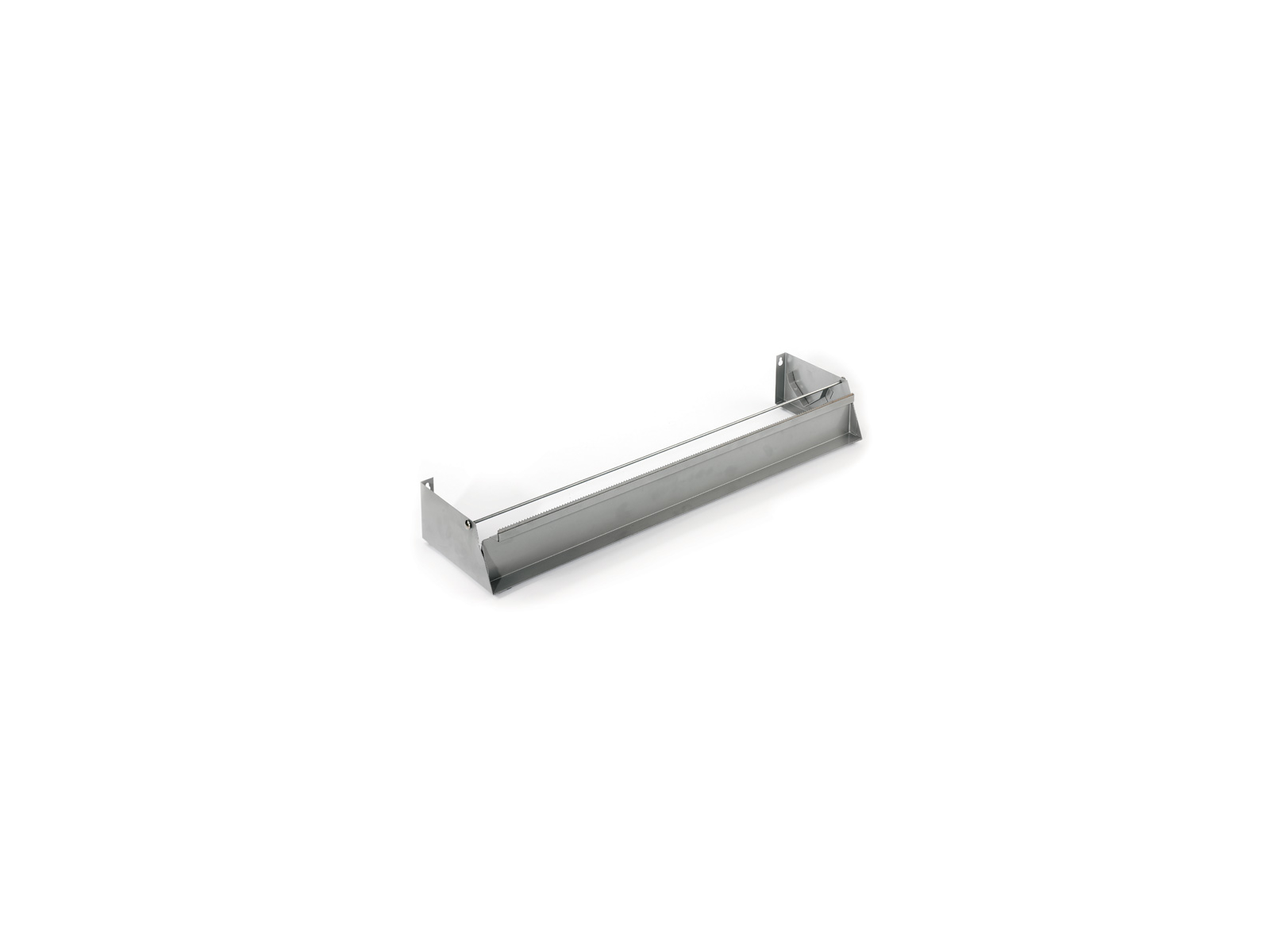 Den robuste konstruktion i lakeret stål giver dispenseren lang levetid selv i krævende industrikøkkener. Den skarpe rullekniv skærer præcist gennem madfilm uden at rive eller folde, hvilket gør hver afskæring perfekt. Dispenserens stabile konstruktion sikrer, at den bliver stående på arbejdsbordet under brug, så du kan afskære film med én hånd.