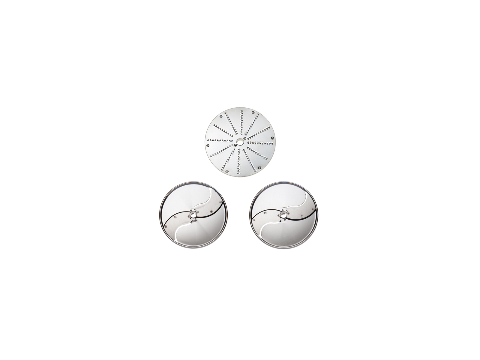 Med disse tre specialdesignede skæreskiver får du værktøjet til at håndtere store mængder grøntsager på kort tid. Hver skive er konstrueret til at give et rent snit uden at knuse eller ødelægge råvarerne. Dette bevarer både smag, tekstur og visuel appel i de færdige retter. Skivernes design sikrer også, at du kan arbejde sikkert og effektivt selv under travle forhold.