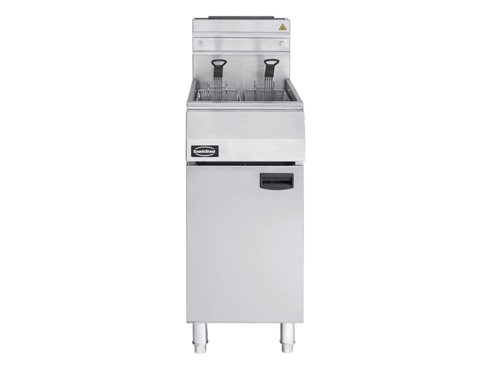 Denne robuste gulvmodel friture fra CombiSteel giver dig 2x12 liters kapacitet og hele 2x9 kW effekt til krævende madlavning. Frituren er designet til professionelle køkkener hvor der stilles høje krav til både kapacitet og ydeevne. Med sin solide konstruktion og høje effekt sikrer den hurtig og ensartet stegning.