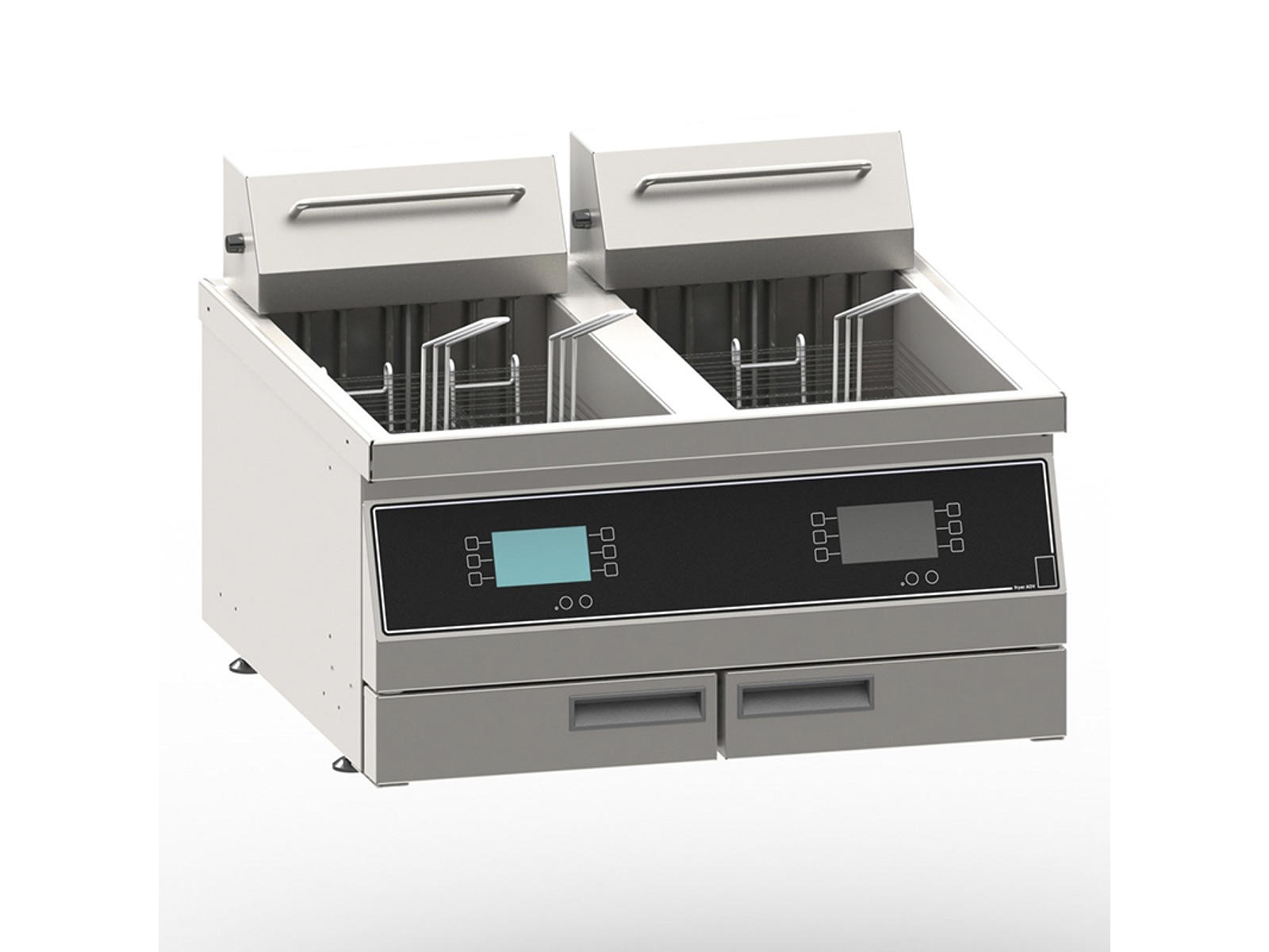 FKI Advanced Friture Bordmodel er en professionel dobbeltfriture med to 16-liters kar og kraftig 15 kW-kapacitet. Denne bordmodel kombinerer avanceret temperaturstyring med et brugervenligt touchscreen-interface, der sikrer ensartede stegeresultater og optimal olieudnyttelse.