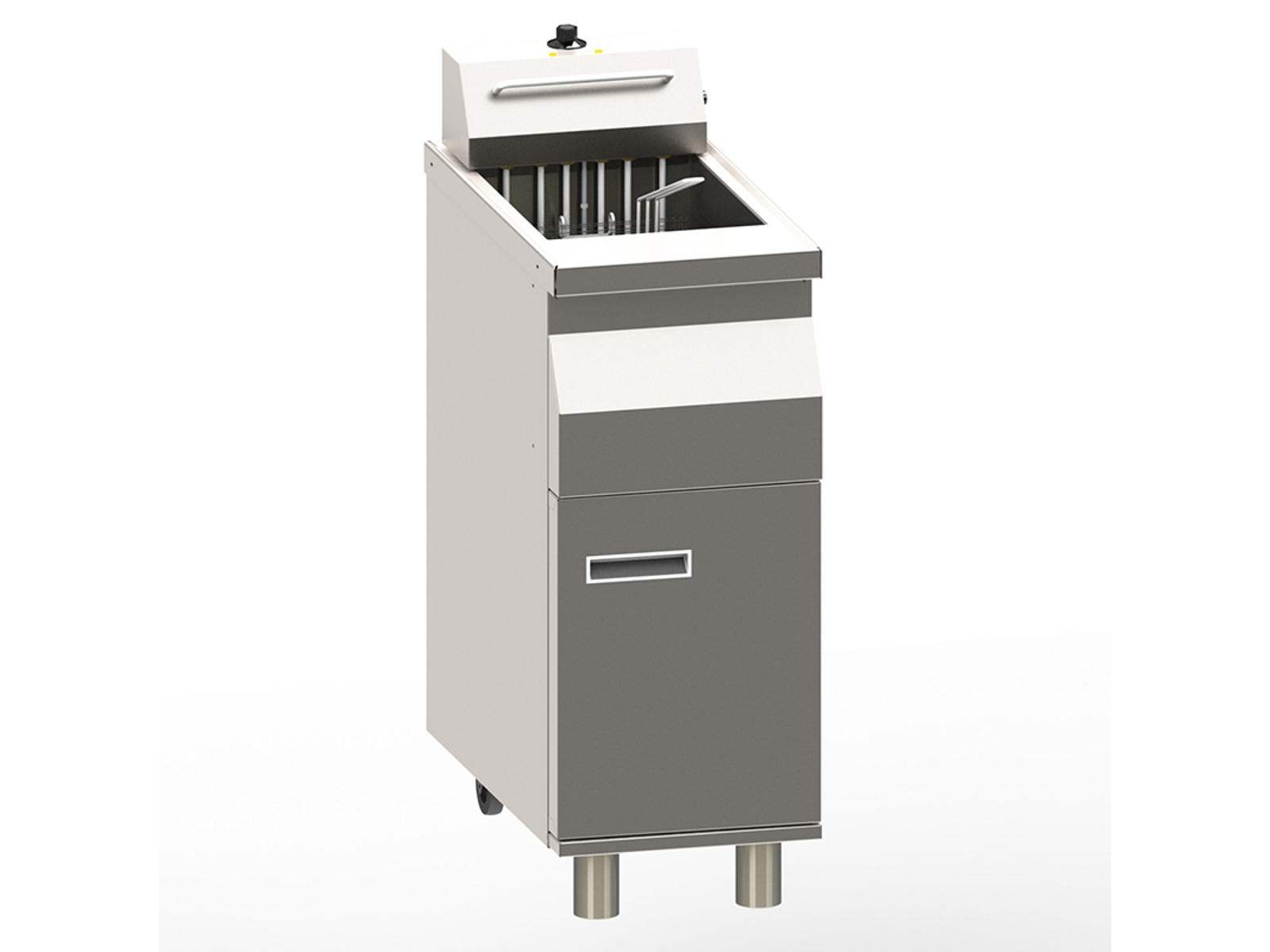 Denne FKI gulvfriture med 15 liter kapacitet giver dig fuld manuel kontrol over friteringsprocessen i professionelle køkkener. Med sin kraftfulde 15 kW varmekilde og analoge temperaturstyring kan du præcist justere olietemperaturen for at opnå perfekte resultater hver gang. Frituren leveres med to halvkurve for samtidig tilberedning af forskellige retter.